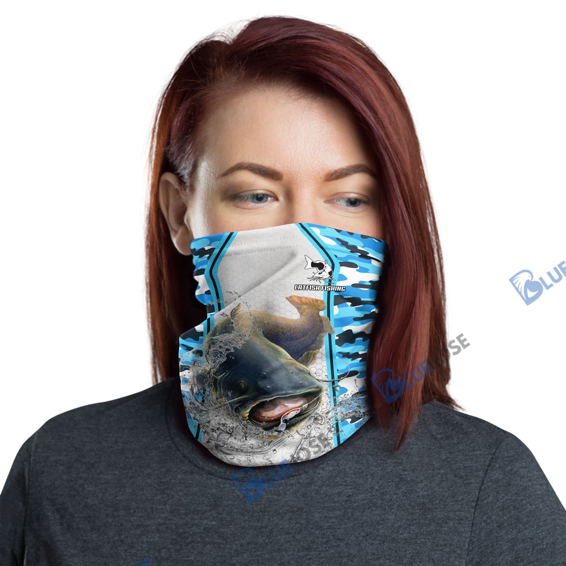 BlueJose Catfish Fishing Light Blue Camo Sport Neck Gaiter