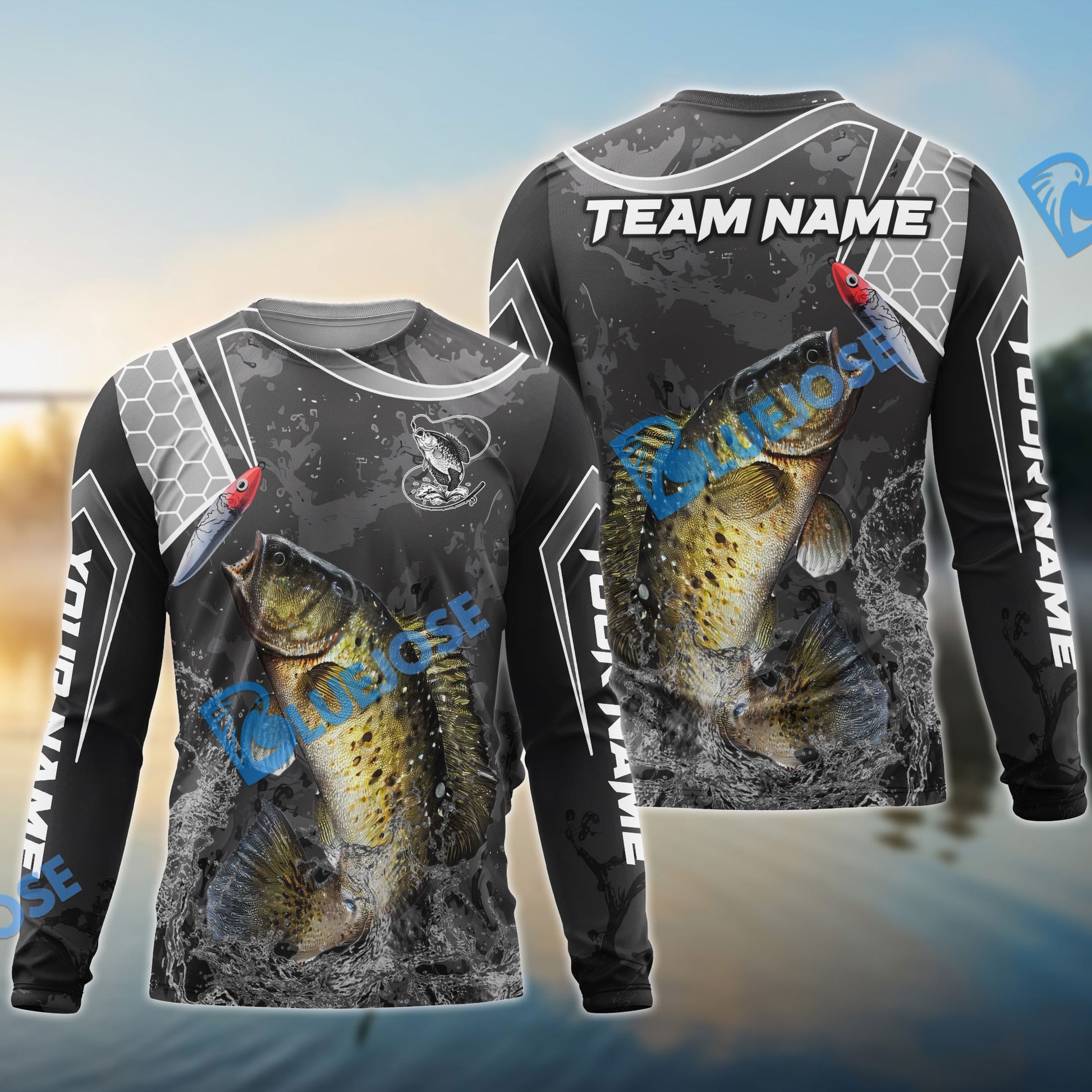 Bluejose Crappie Fishing Gray Camo Sport Custom Name & Team Name 3D Shirts