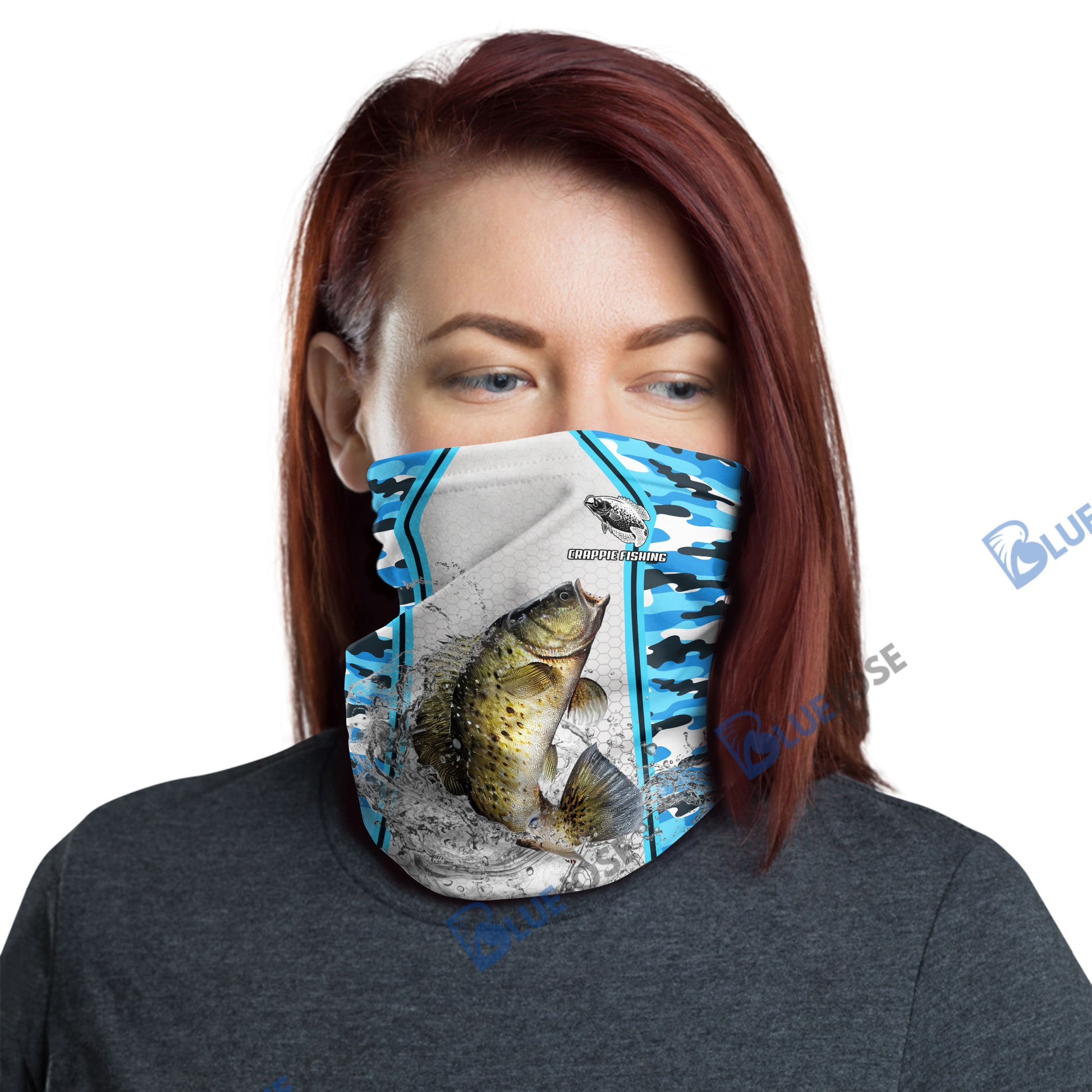 BlueJose Crappie Fishing Light Blue Camo Sport Neck Gaiter