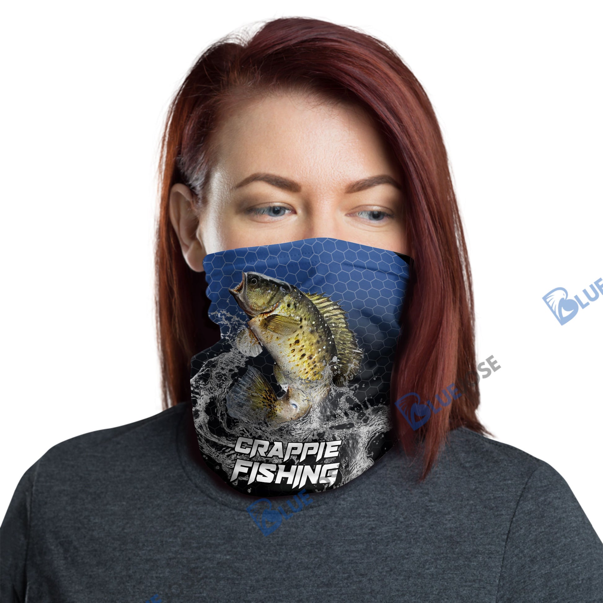 BlueJose Crappie Fishing Navy Hexagon Sport Neck Gaiter