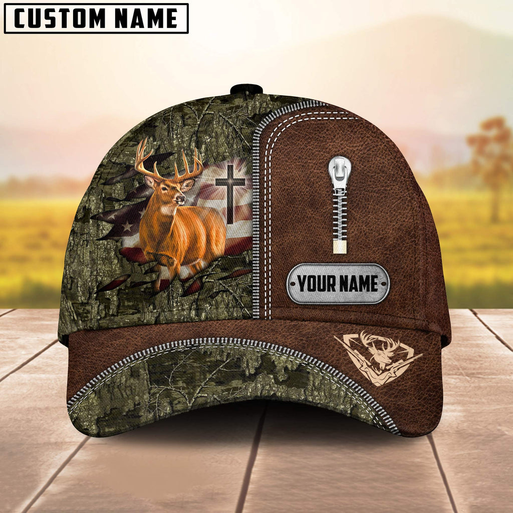 BlueJose Cross America Hunting Deer Zipper Leather Pattern Multicolor Personalized Cap