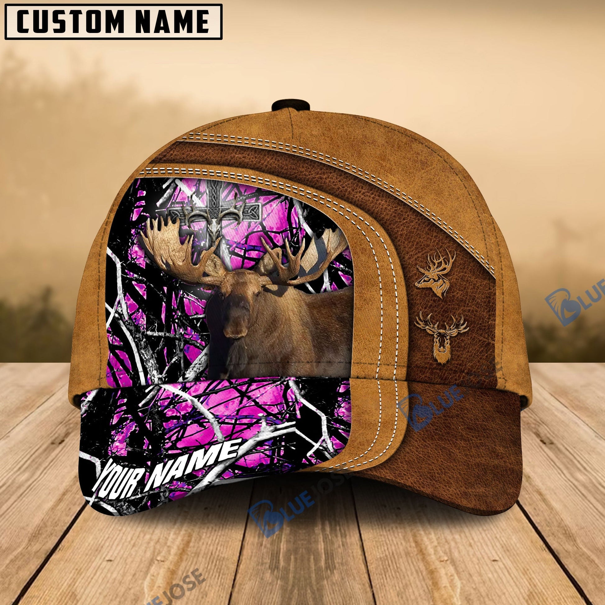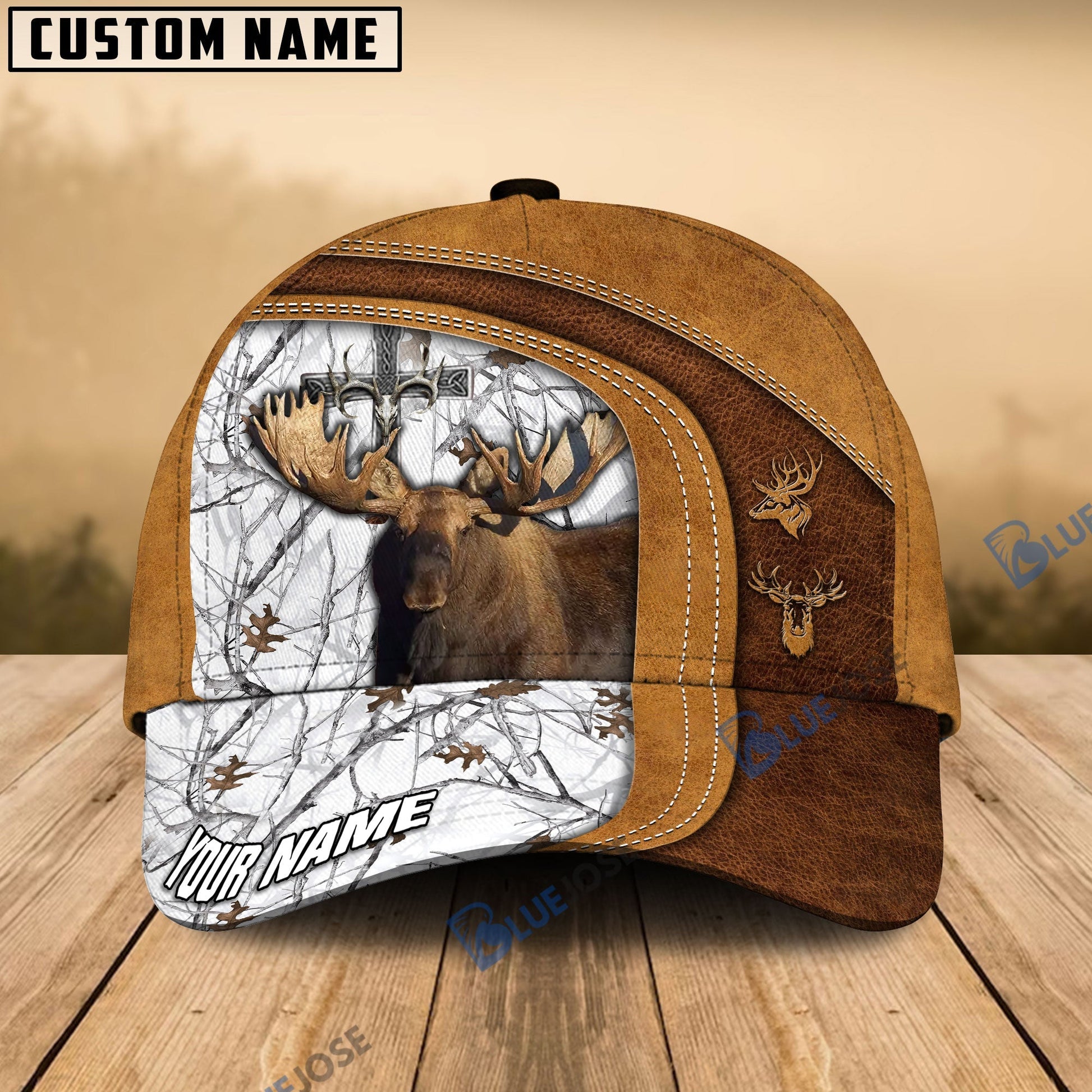 BlueJose Cross America Hunting Moose Leather Pattern Multicolor Personalized Cap (5 Colors)