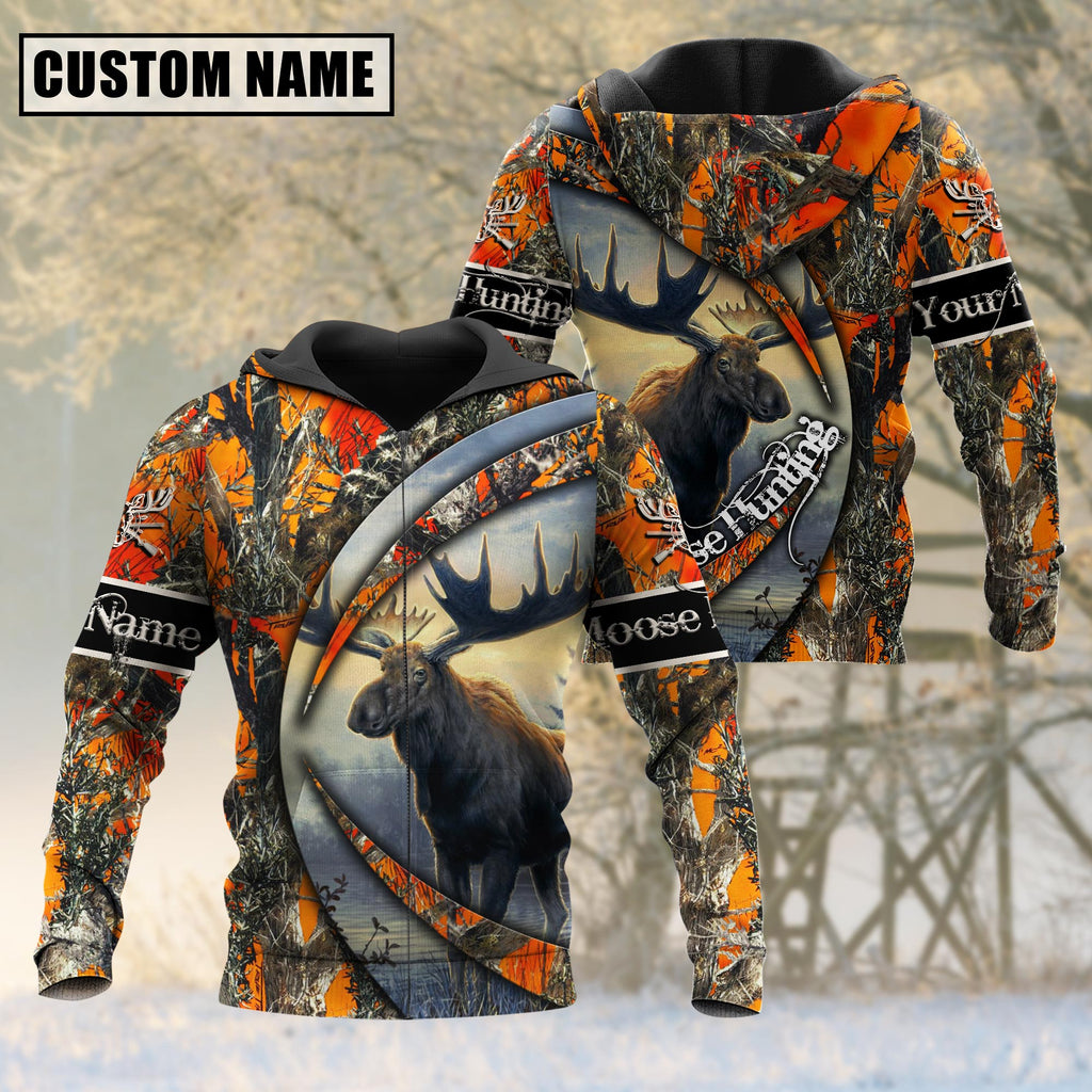 BlueJose Custom Name Hunting Moose Camo US Flag 3D Shirt