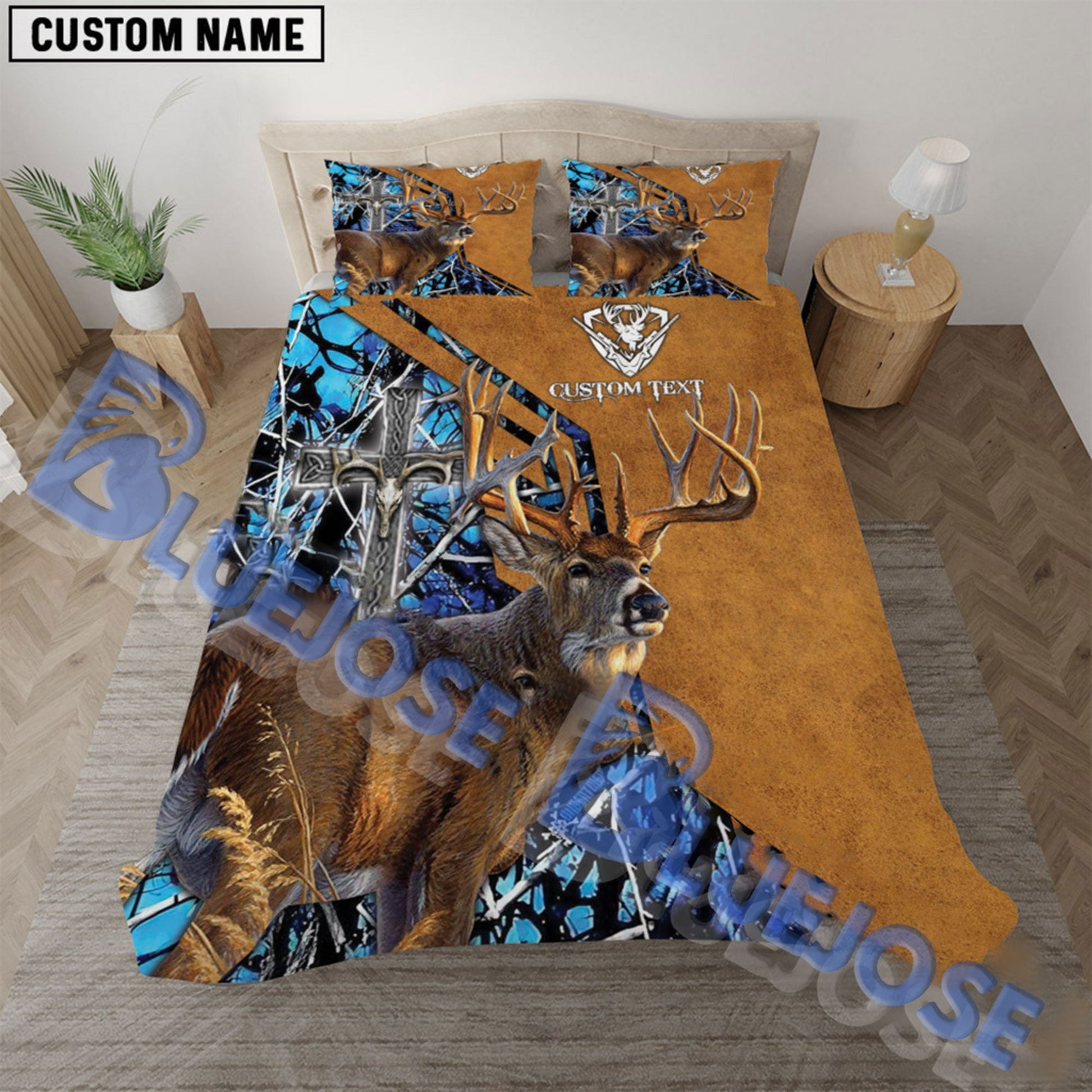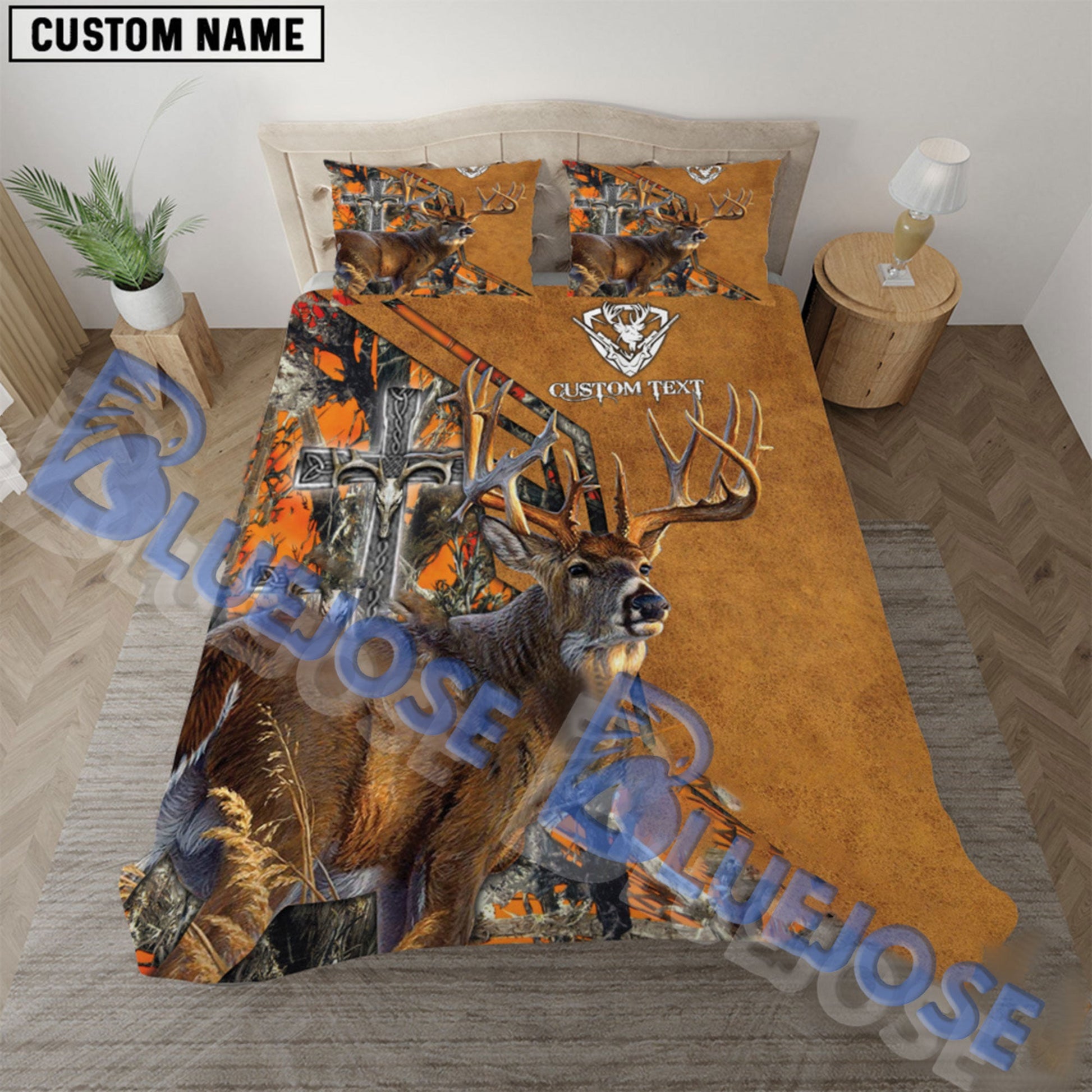 Bluejose Custom Text Wilderness Cross Deer Hunting Bedding Set 3D All Over Printed ( 4 Colors )