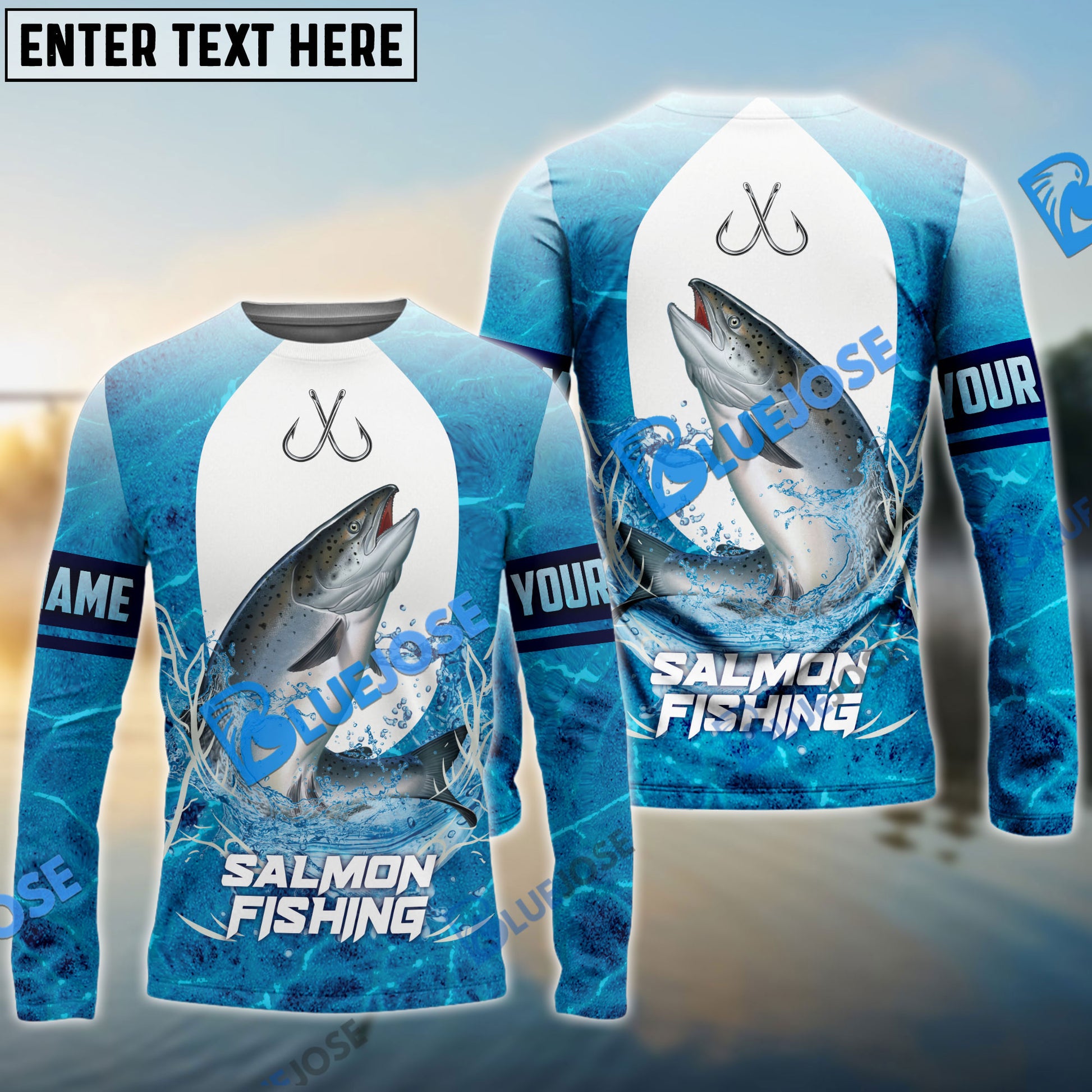 BlueJose Customize Name Salmon Fishing Blue Wave 3D Shirts