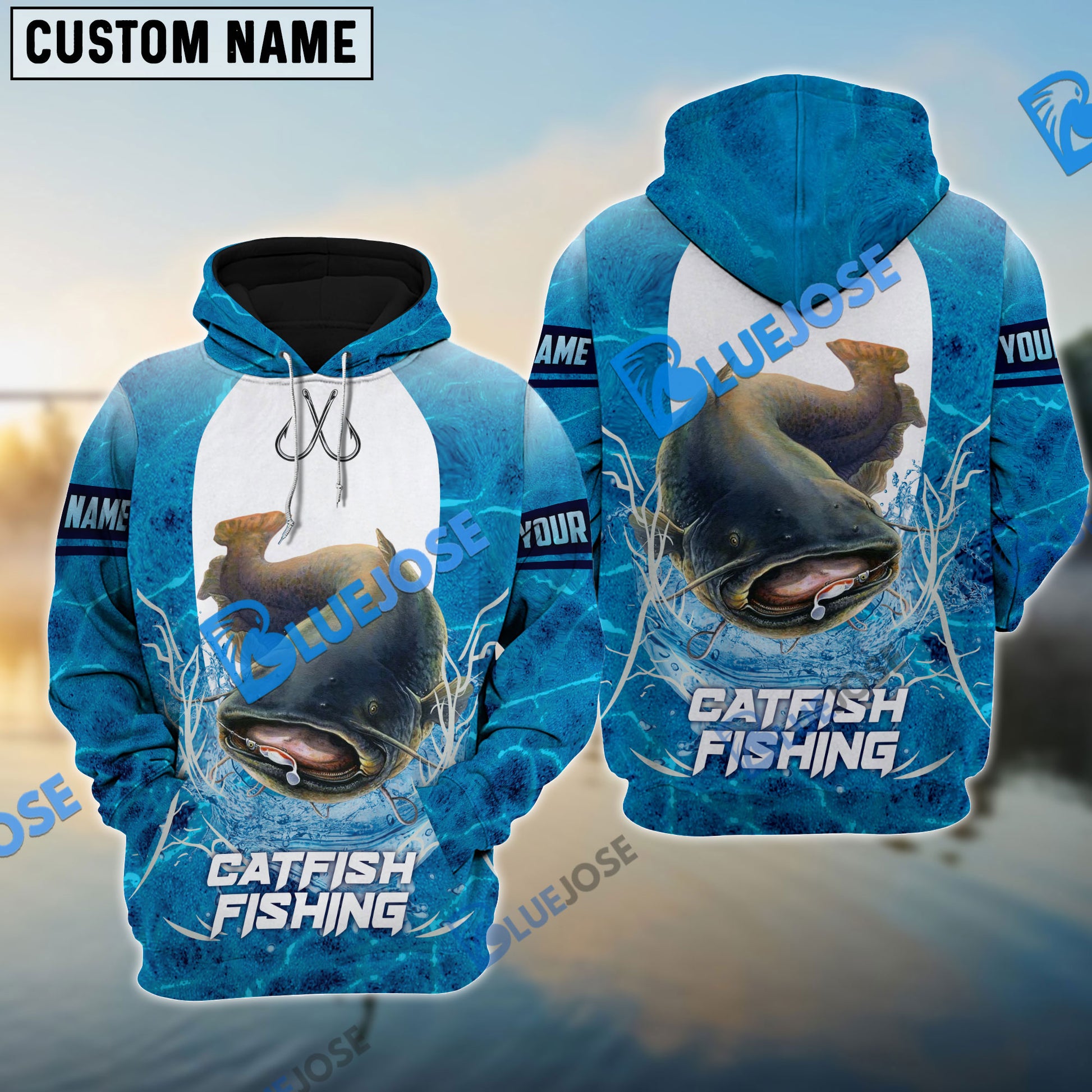 BlueJose Customize Name Catfish Fishing Blue Wave 3D Shirts