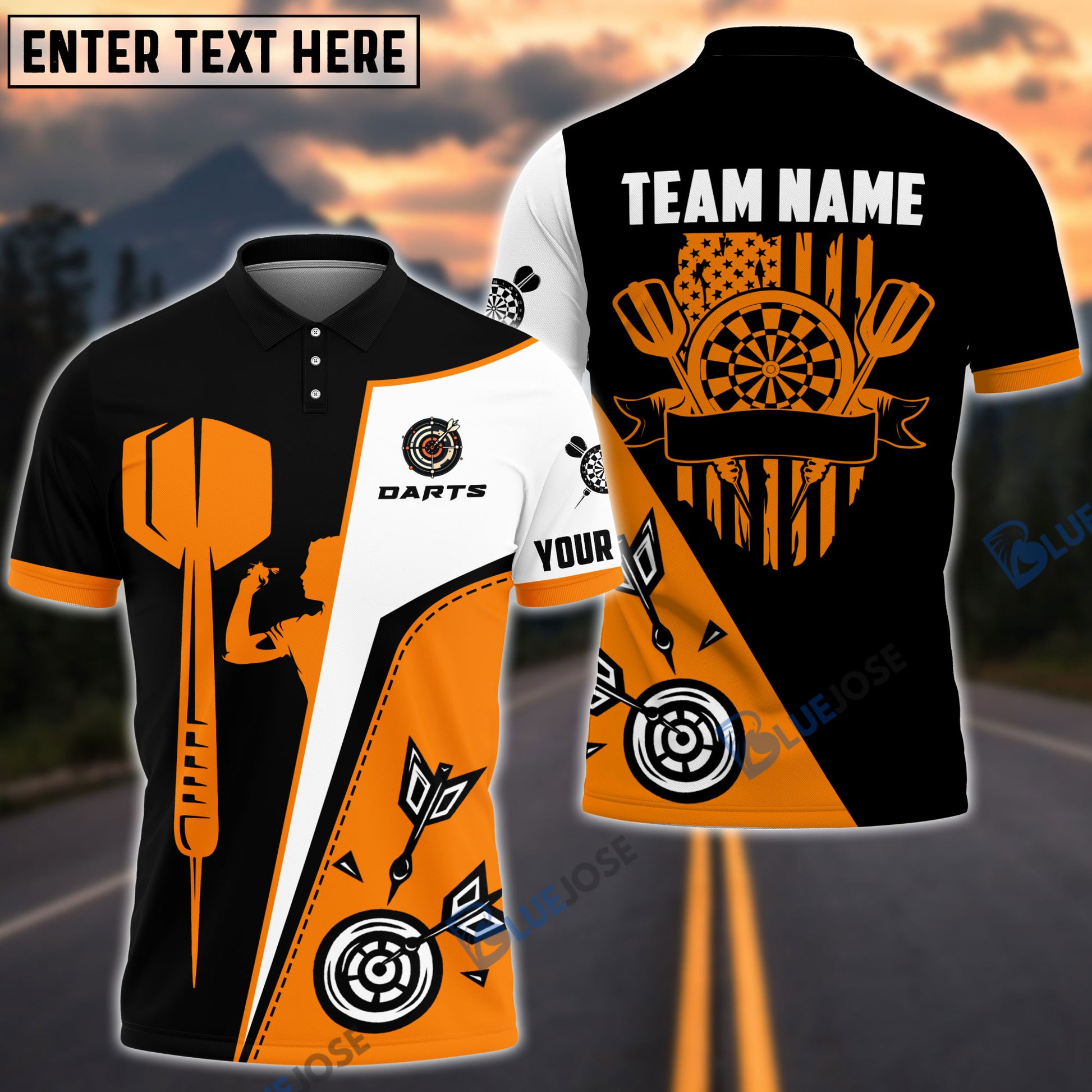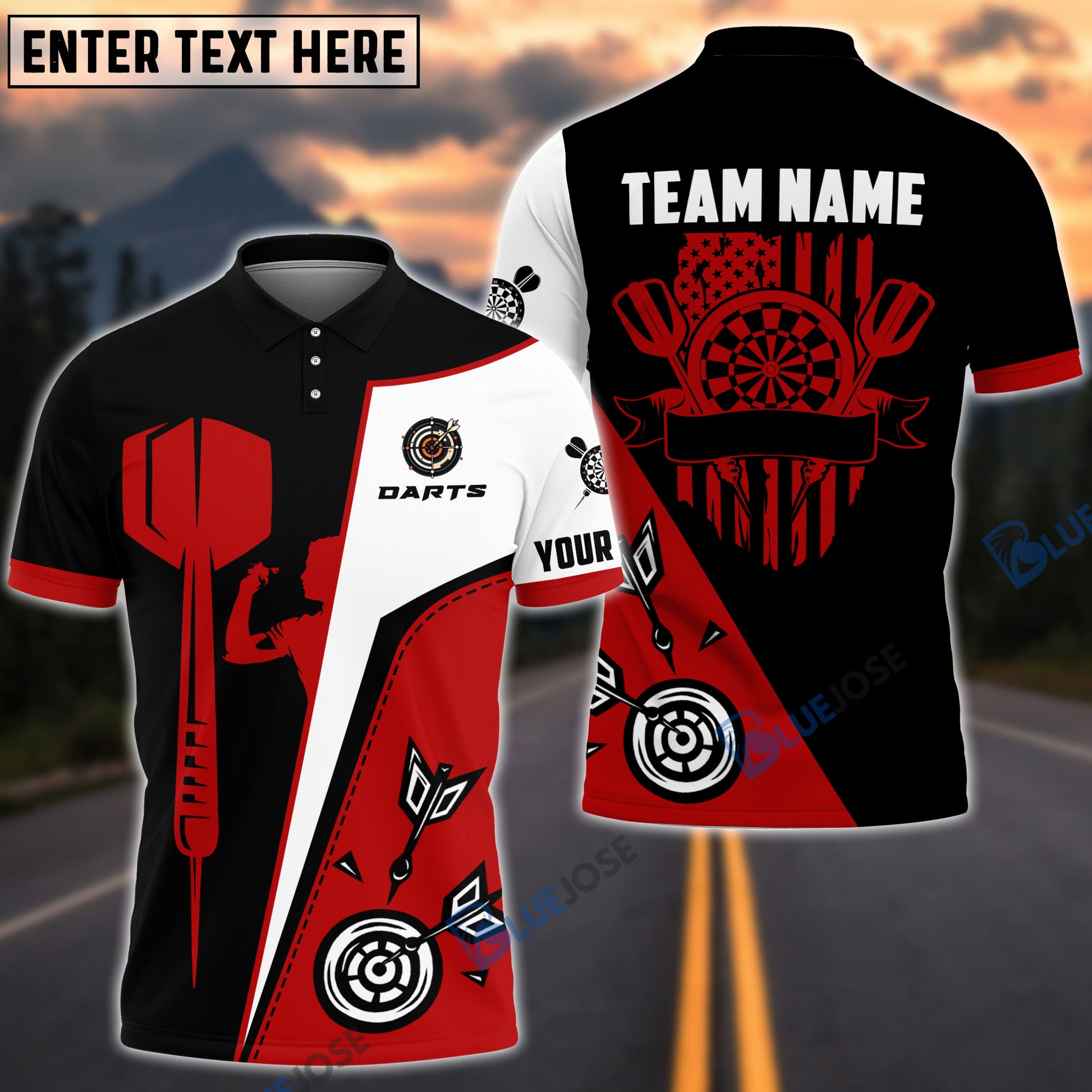 BlueJose Dart Board US Flag Personalized Name, Team Name 3D Shirt (4 Colors)
