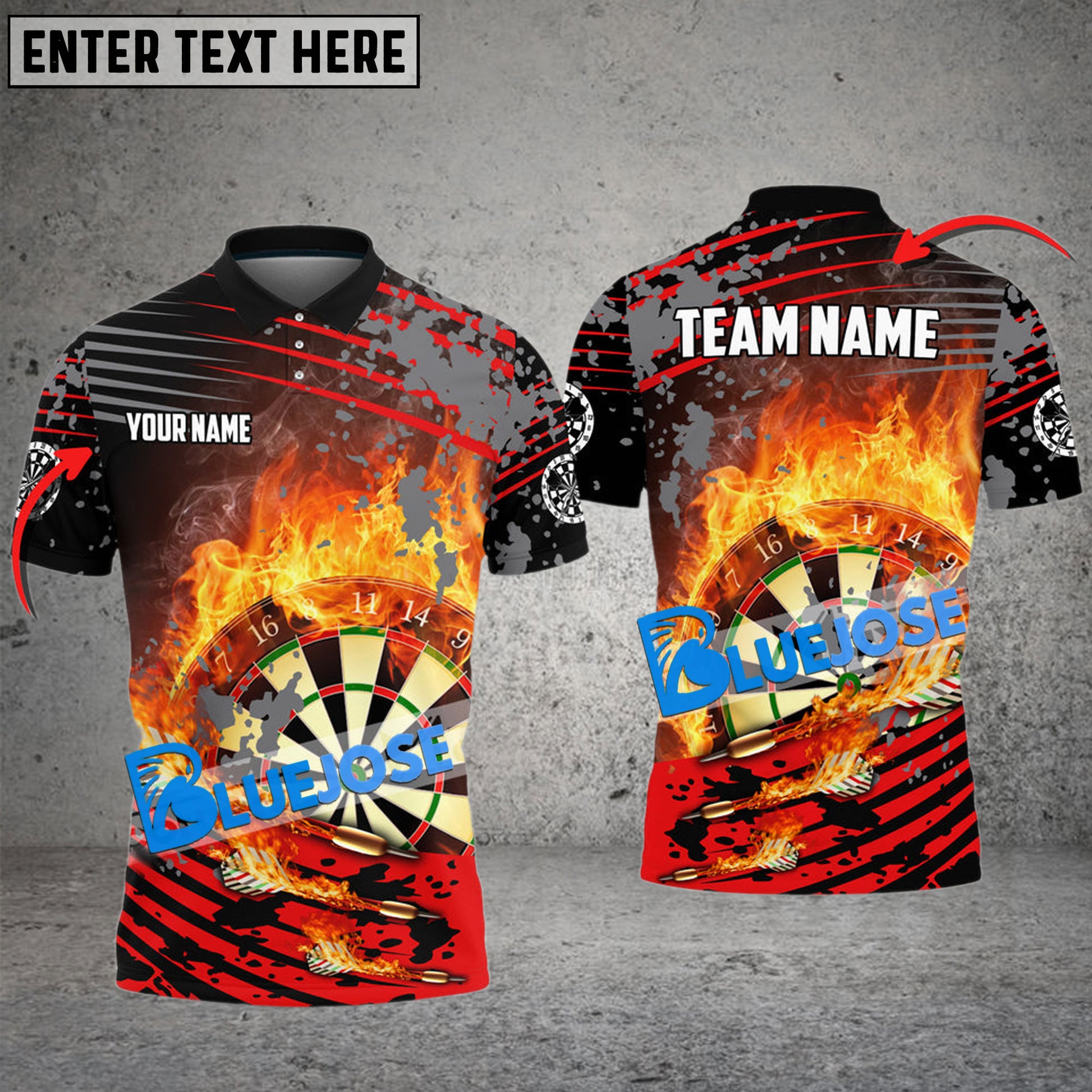 BlueJose Darts Flame Sport Jerseys Personalized Name, Team Name 3D Shirt (4 Colors)