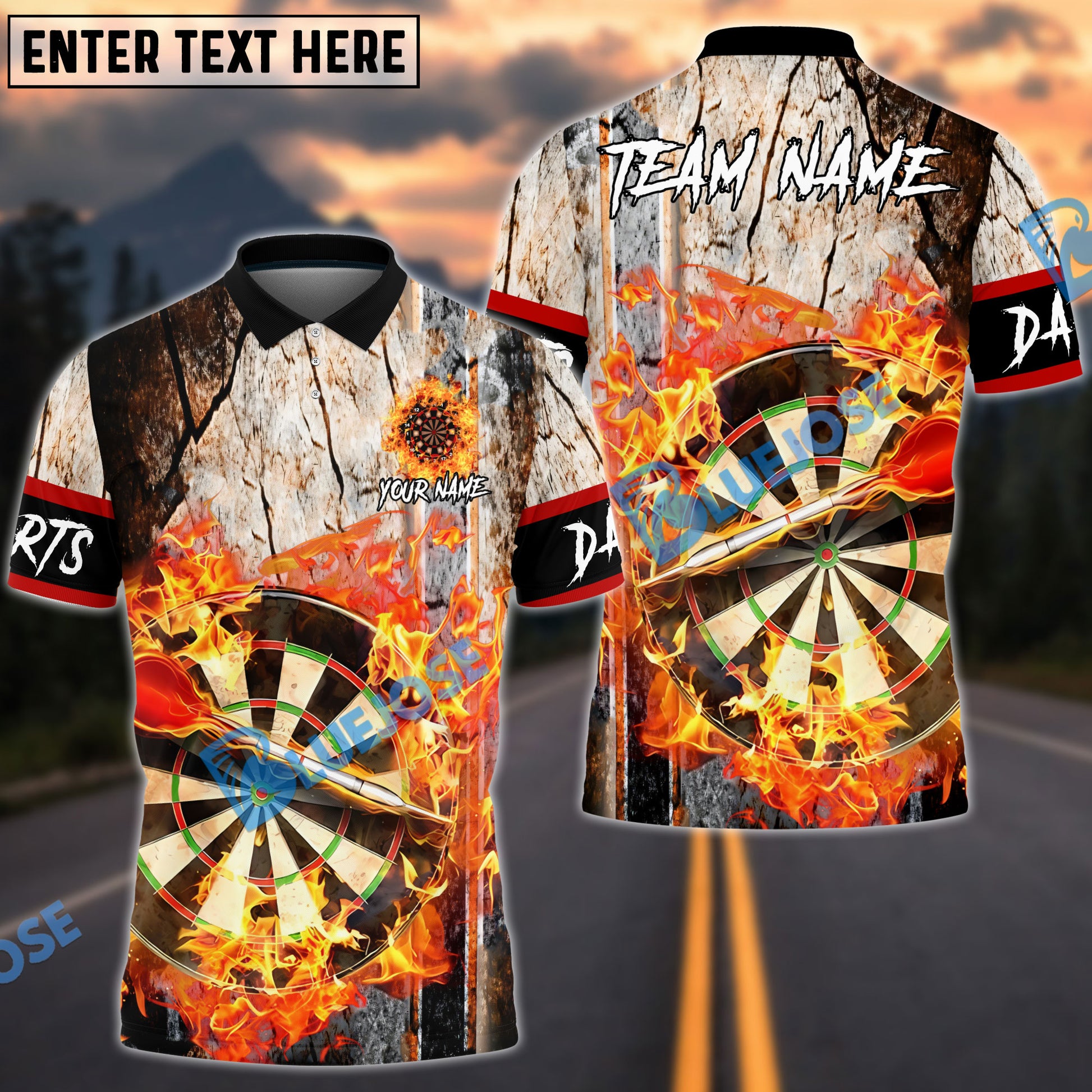 BlueJose Darts Old School Flame Personalized Name, Team Name 3D Shirt (4 Colors)