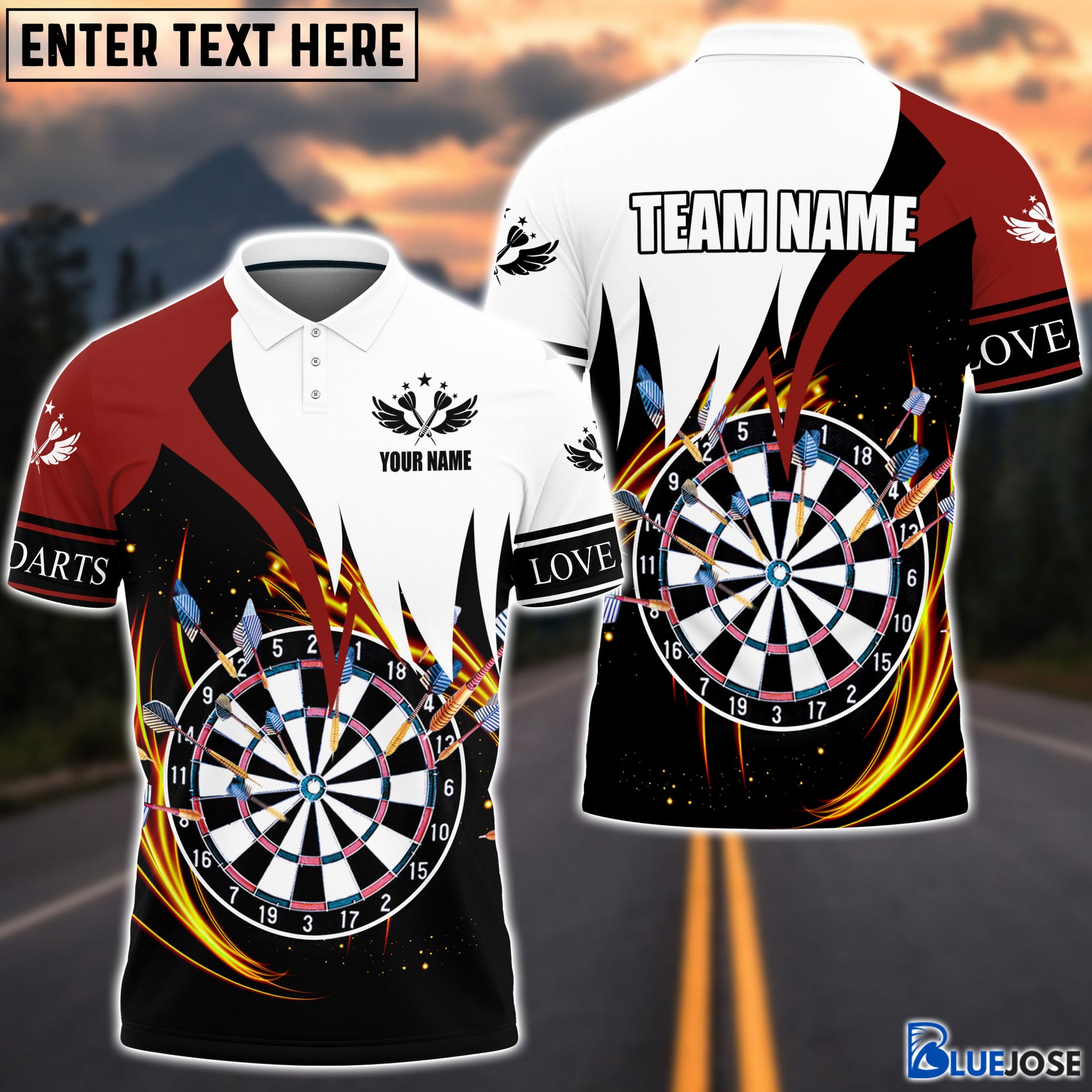 BlueJose Darts Red & White Personalized Name 3D Shirt