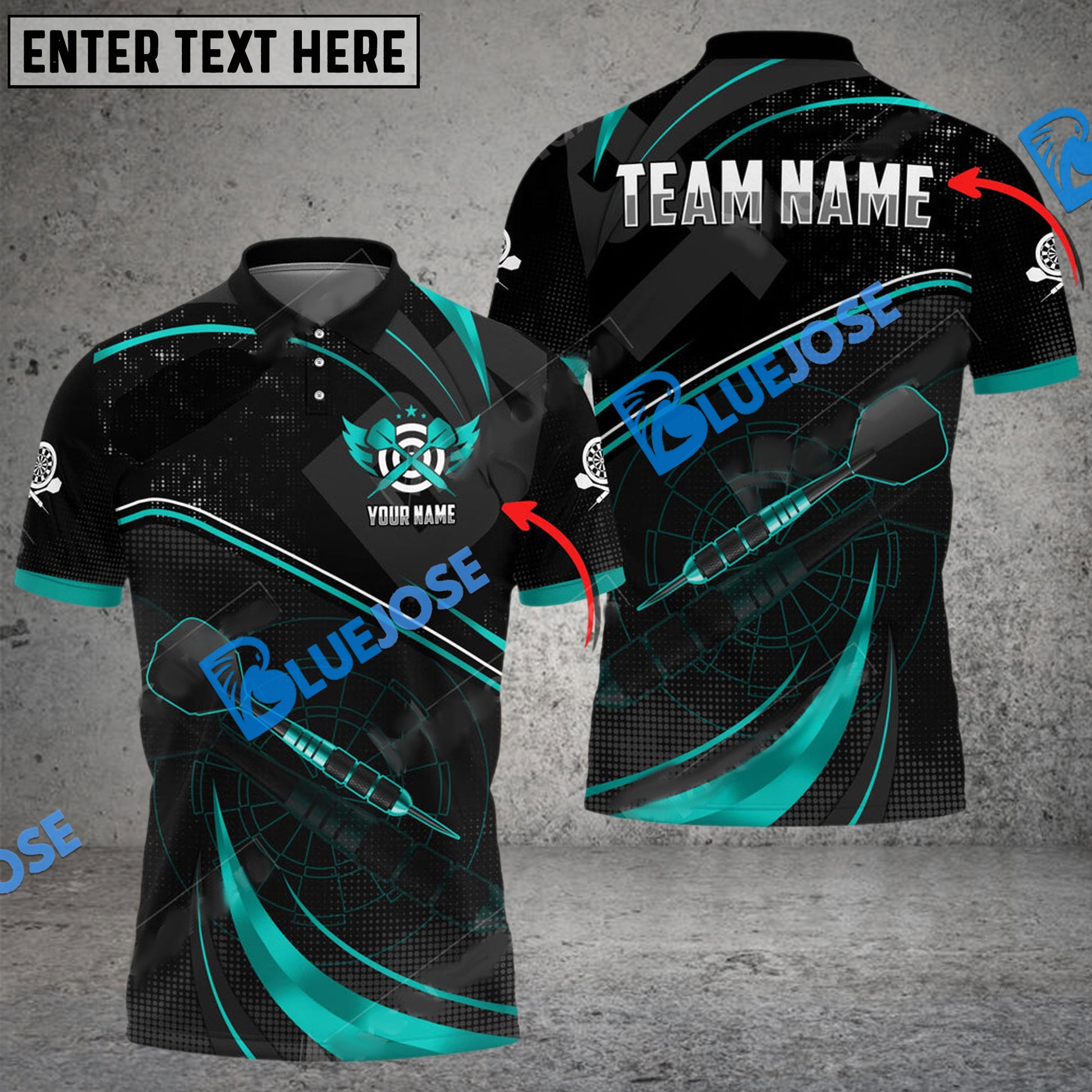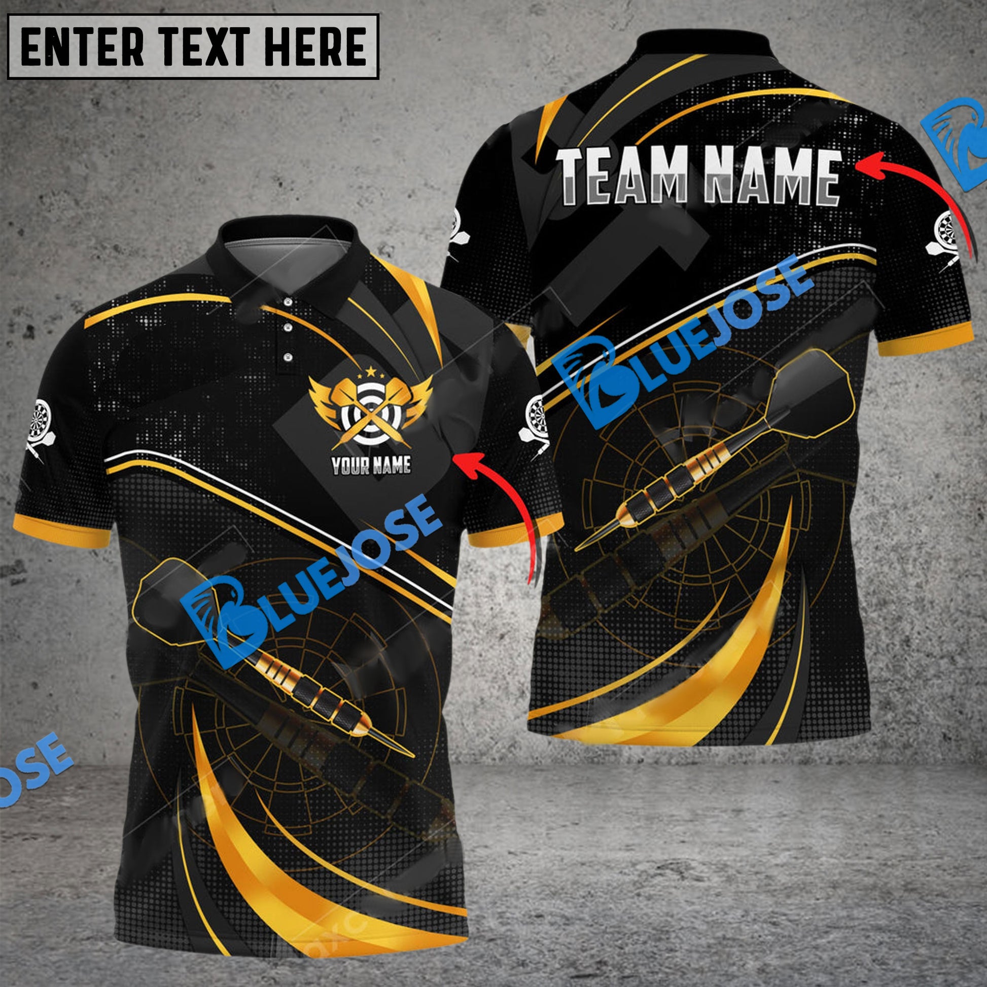 BlueJose Darts Spinning Arrow Personalized Name, Team Name 3D Shirt (6 Colors)
