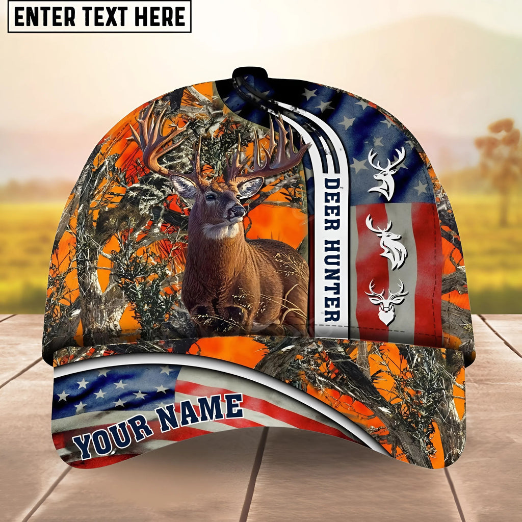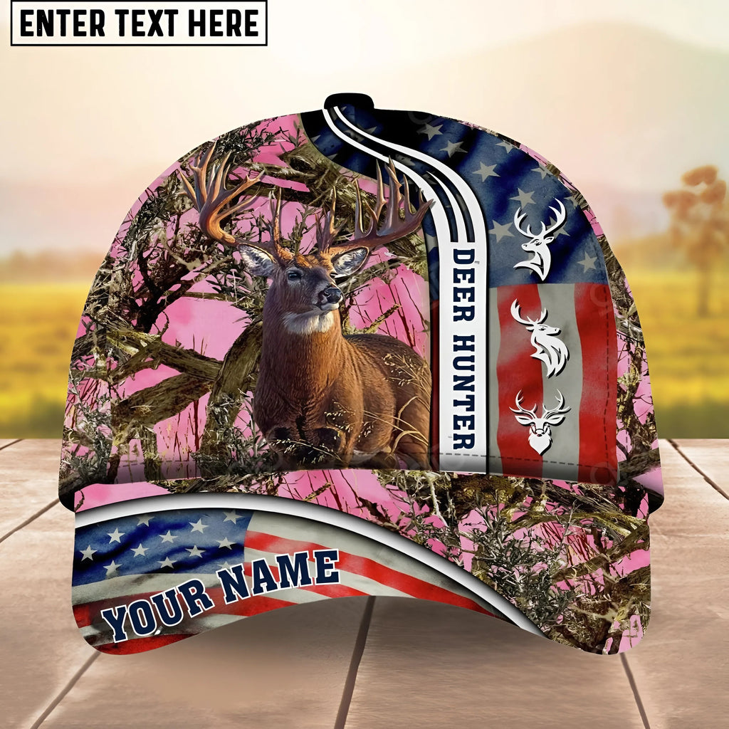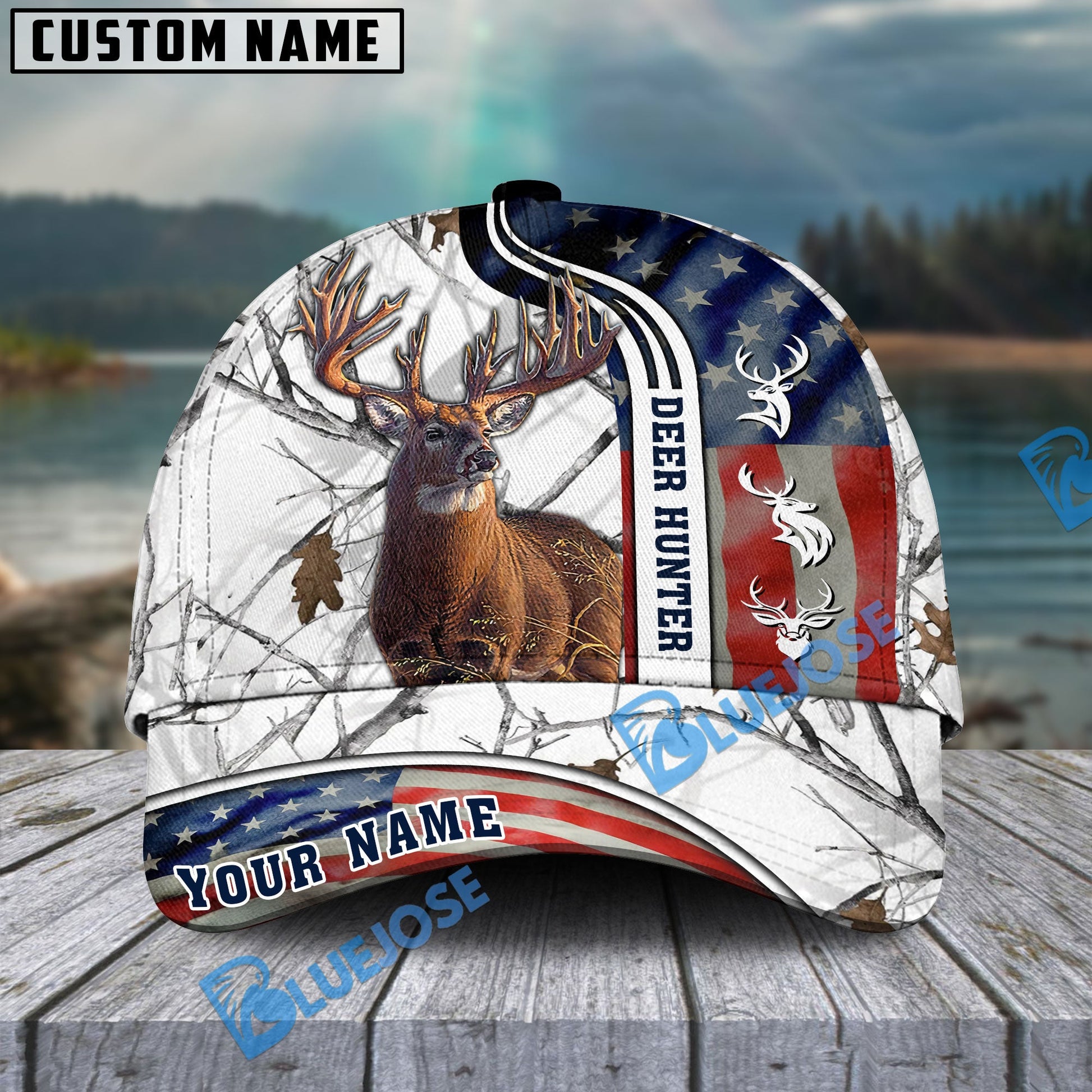 BlueJose Deer Huntaholic American Hunting Camo Pattern Multicolor Personalized Name 3D Cap (4 colors)