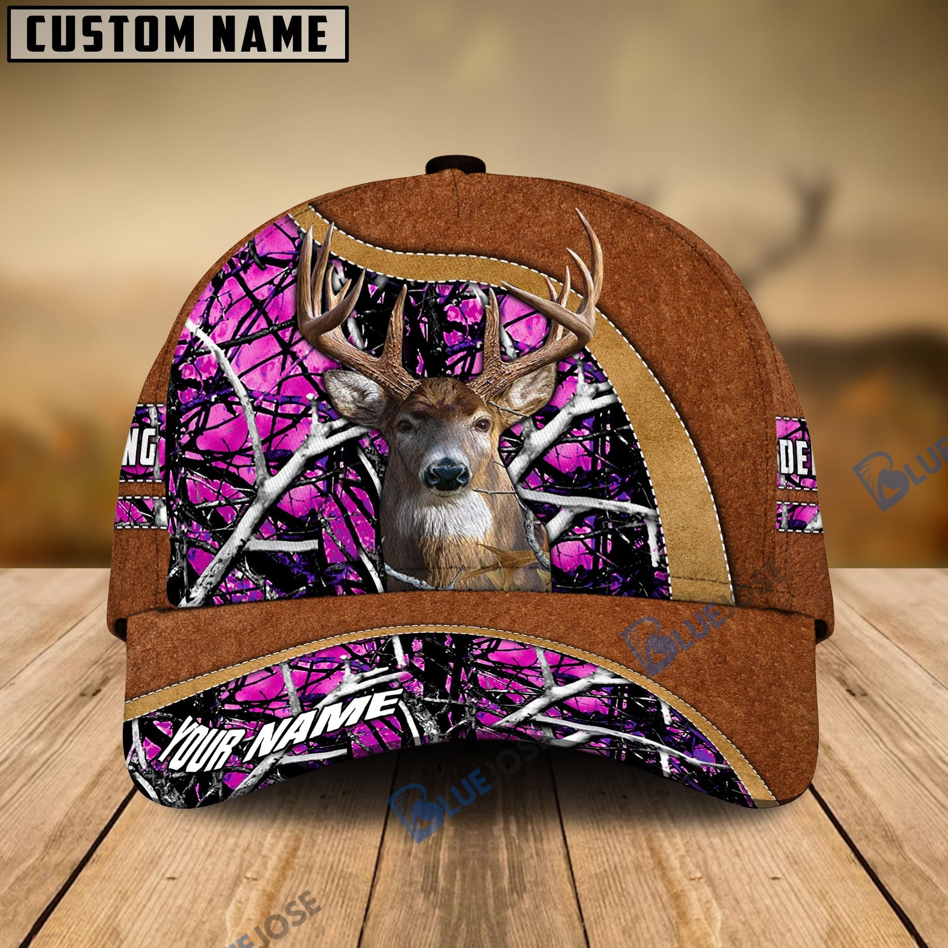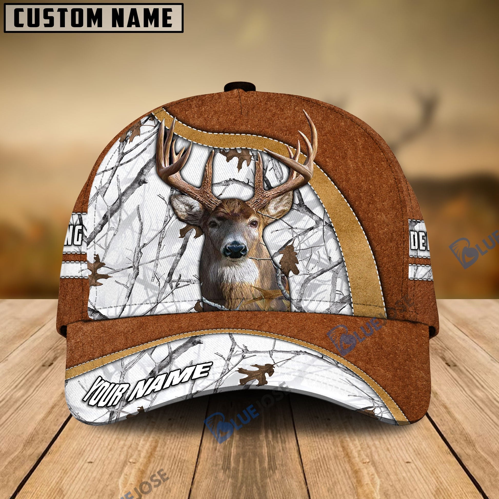 BlueJose Deer Hunting Light Brown Leather Pattern Personalized Name Cap
