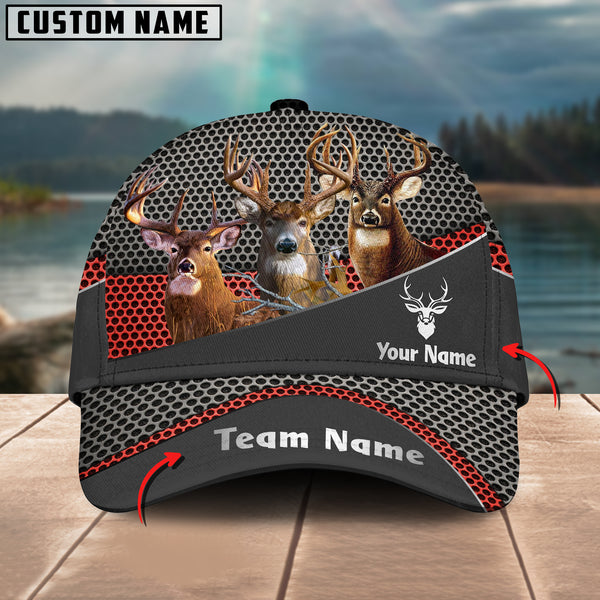 BlueJose Deer Hunting Personalized Name And Team Name Metal Pattern 3D Classic Cap
