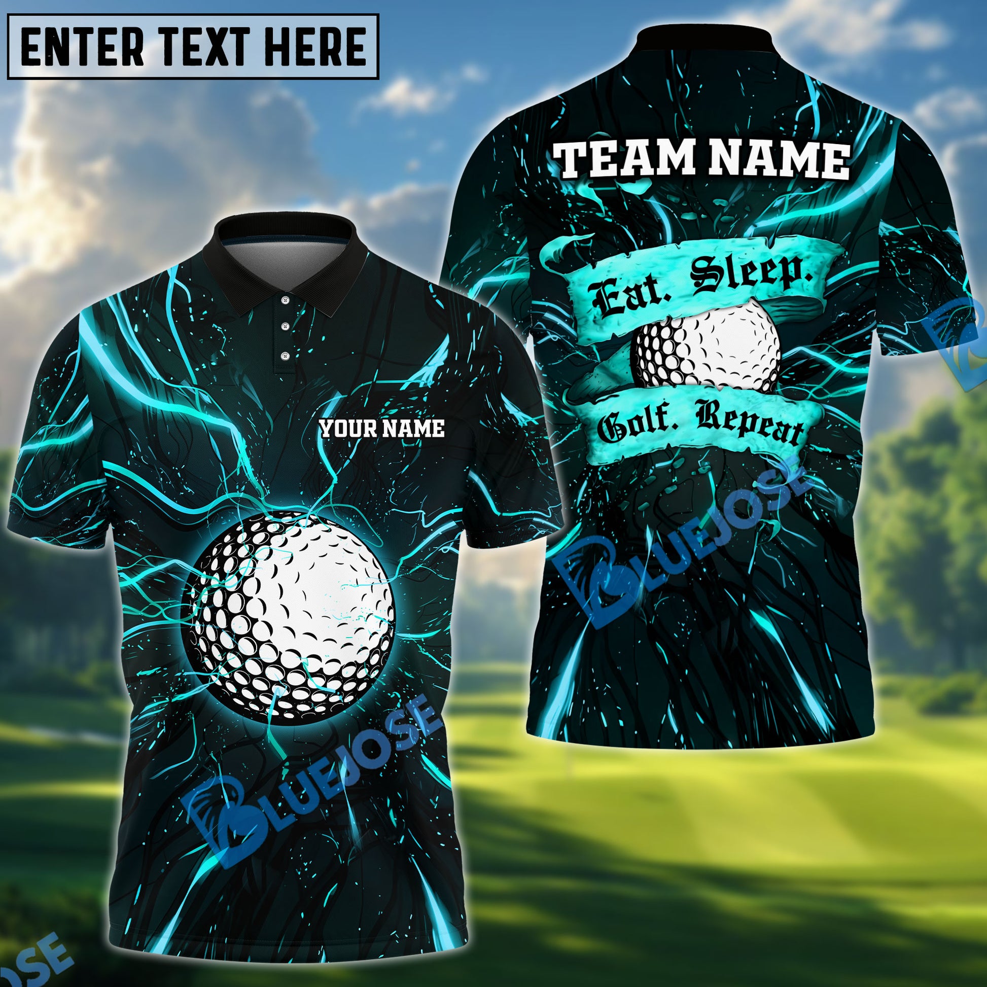 BlueJose Electric Golf Repeat Funny Golf Polo Shirt, Customized Name & Team Name 3D Shirts (4 Colors)