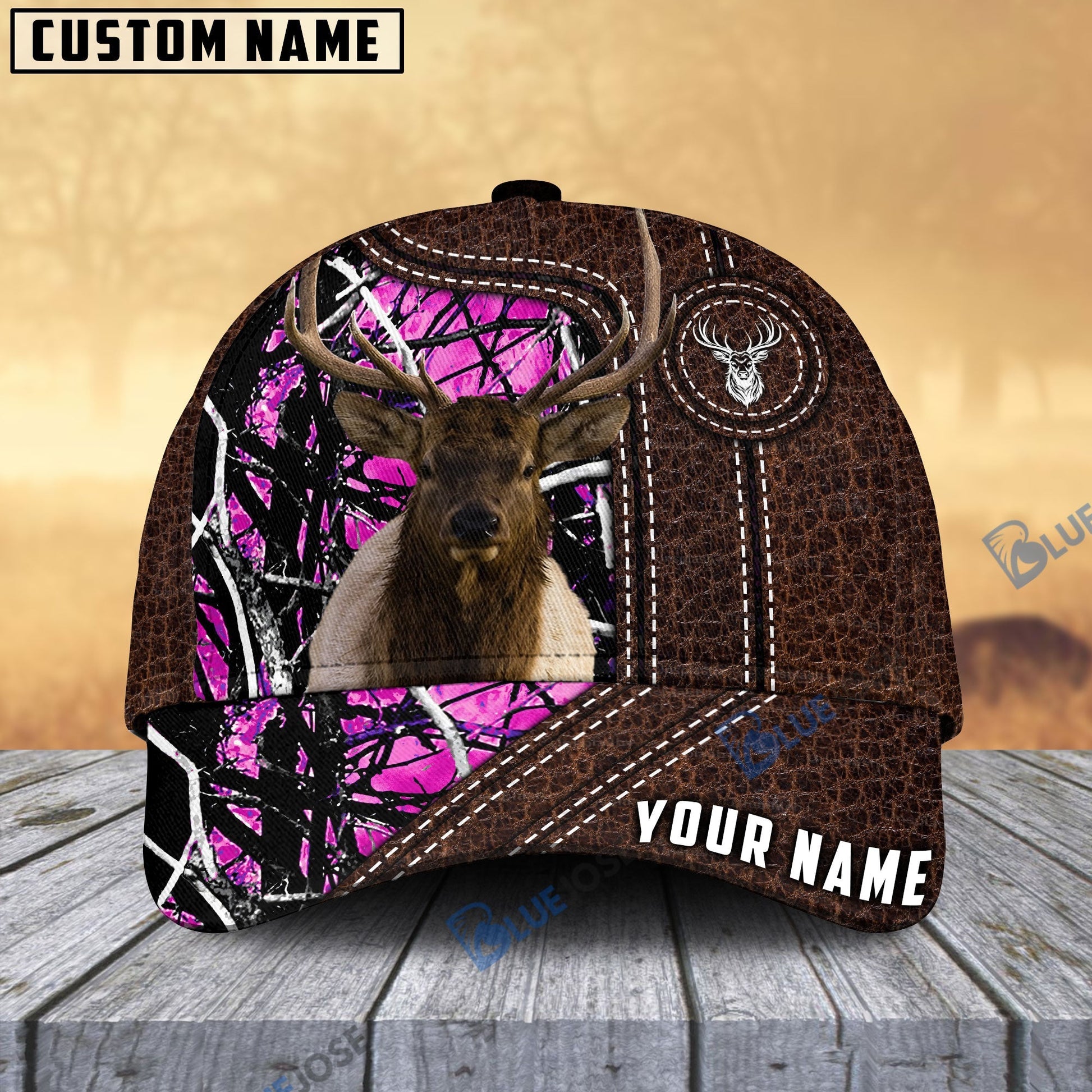 BlueJose Elk Hunting Premium Leather Pattern Personalized Name Cap (4 Colors)