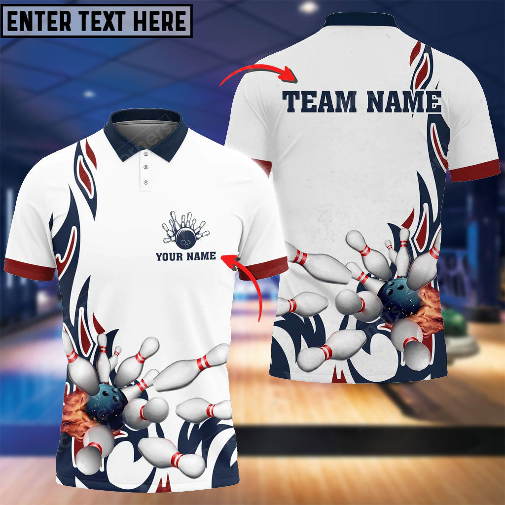 BlueJose Fire Bowling And Pins Flame Pattern Multicolor Option Customized Name 3D Shirt (4 Colors)