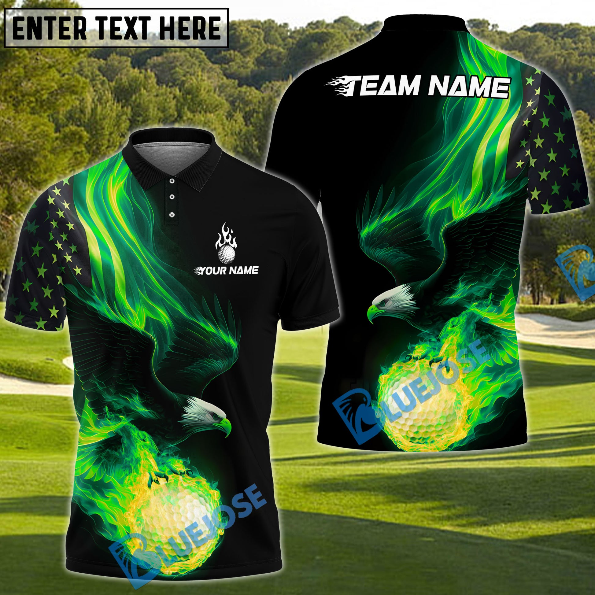 BlueJose Fire Eagle Golf Polo Shirt, Customized Name & Team Name 3D Shirts (4 Colors)