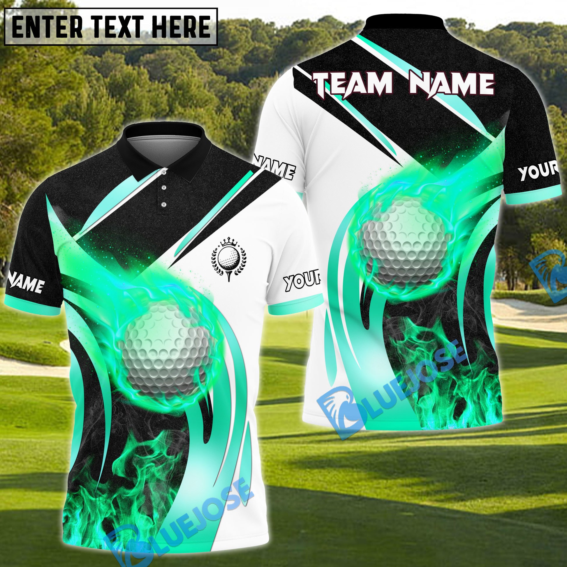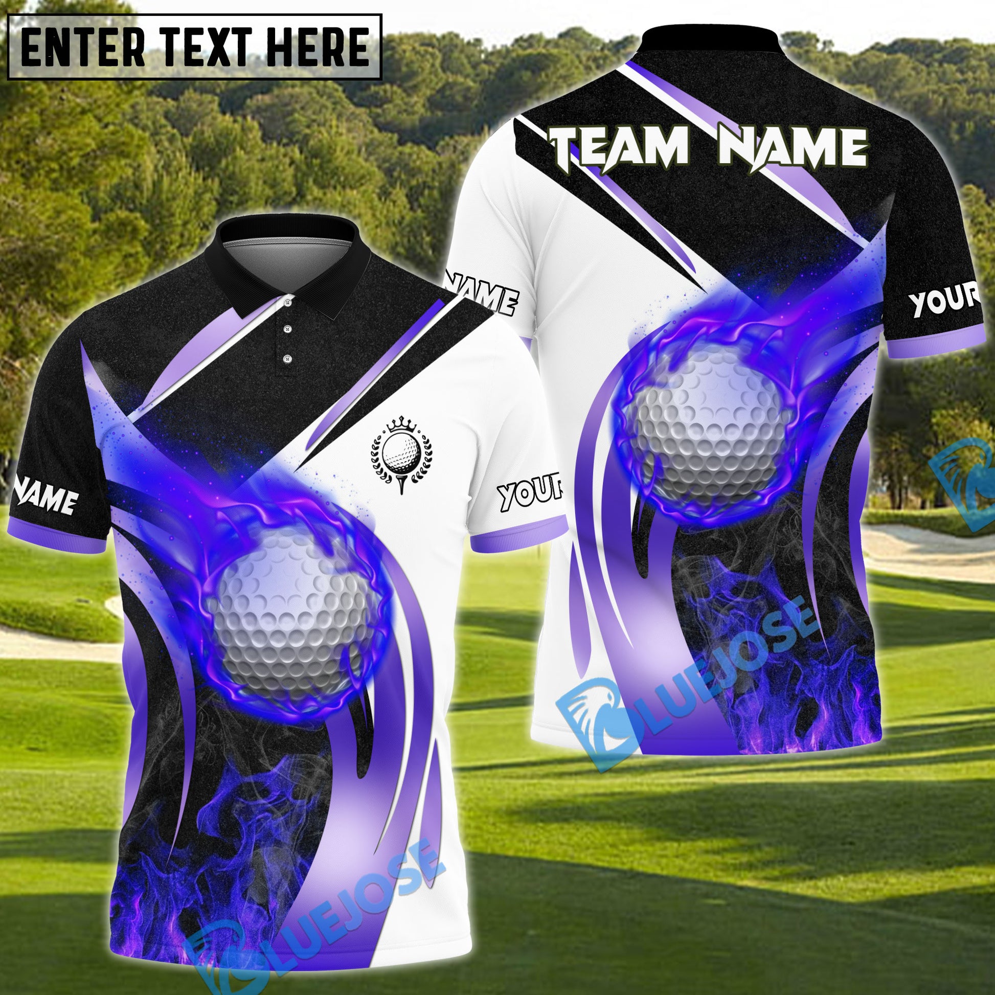 BlueJose Fire Swing Golf Polo Shirt, Customized Name & Team Name 3D Shirts (4 Colors)
