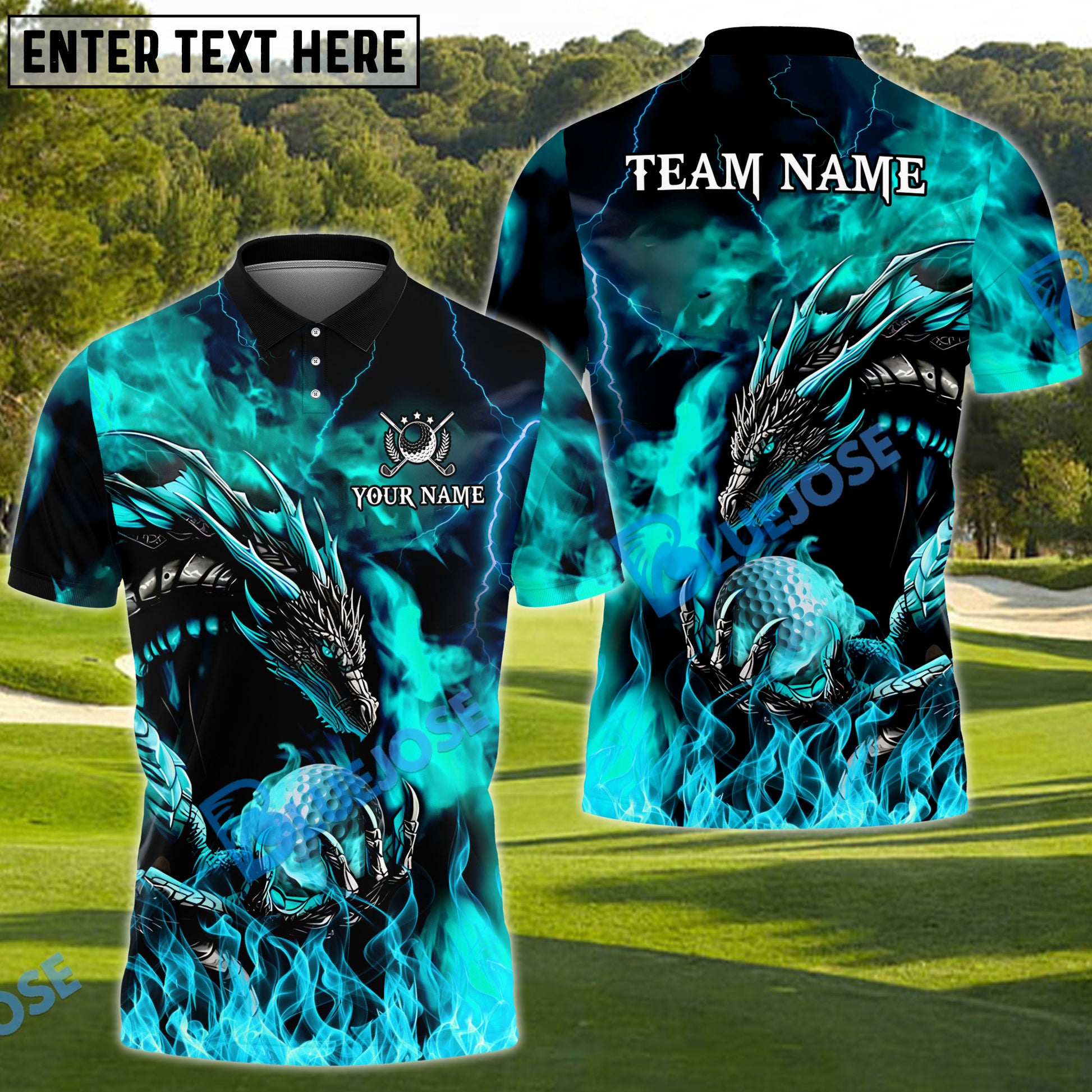 BlueJose Dragon Golf Fire Lightning Shirt Customized Name, Team Name 3D Shirts (4 Colors)
