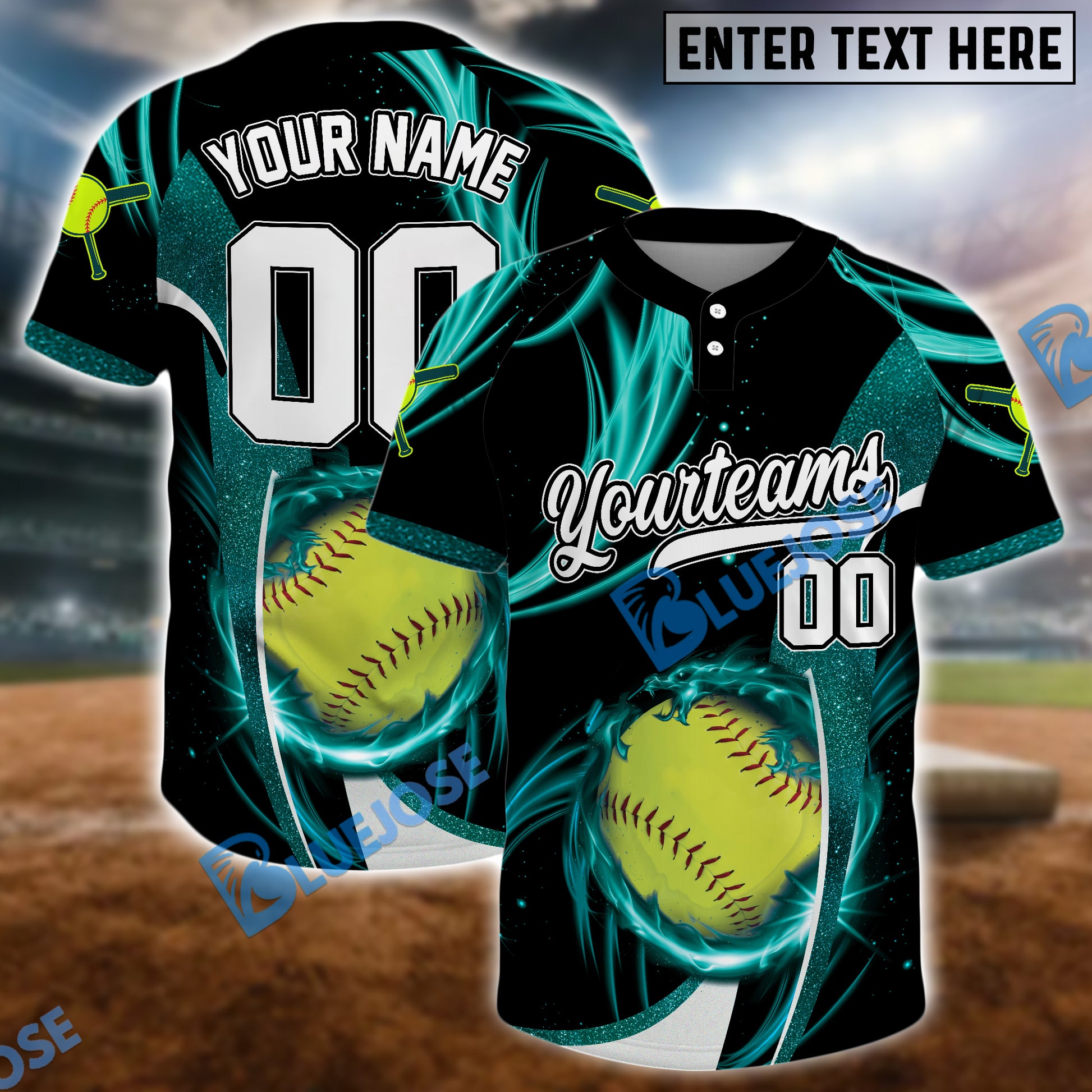BlueJose Lightning Softball Jersey, Custom Name & Team Number 3D Shirt (4 Colors)