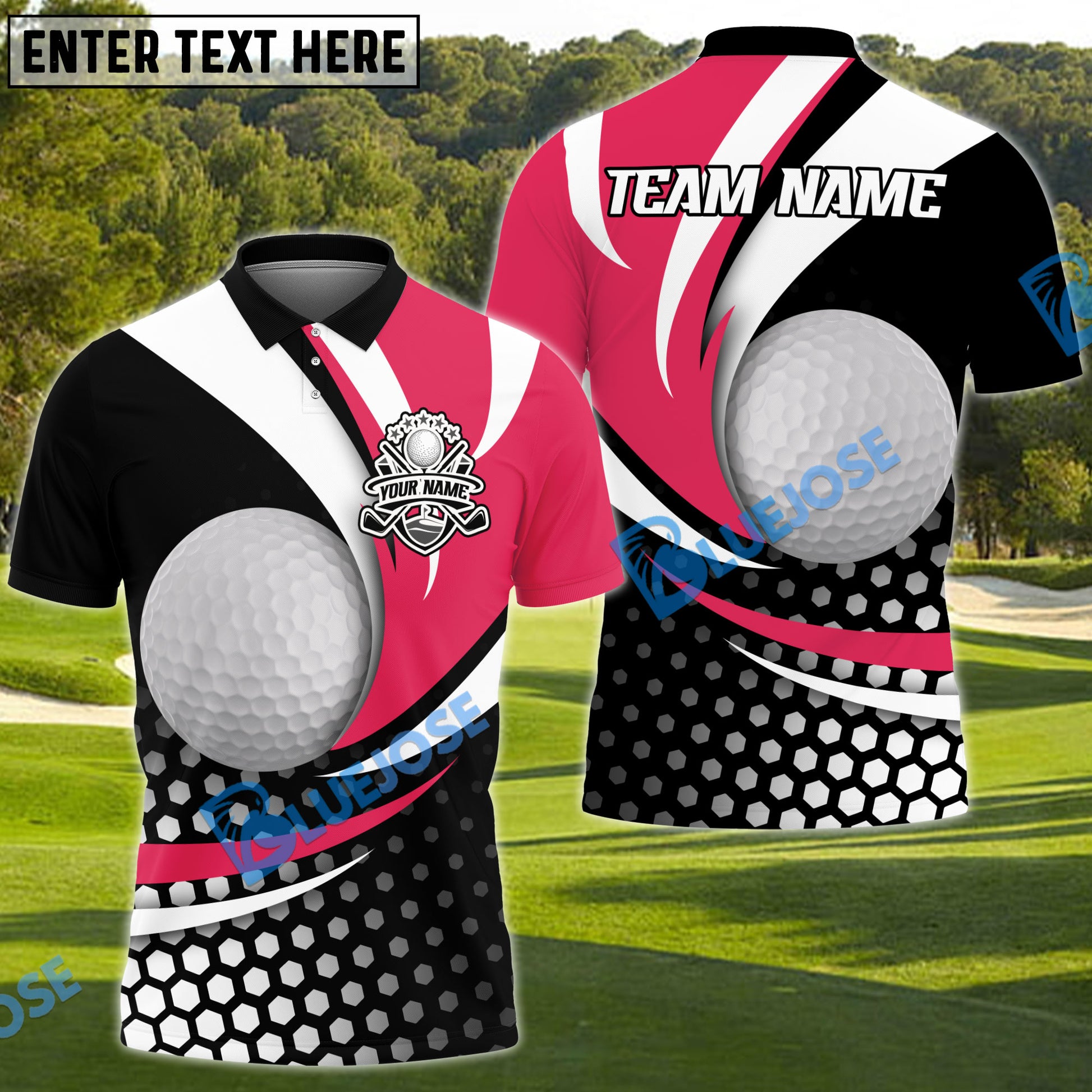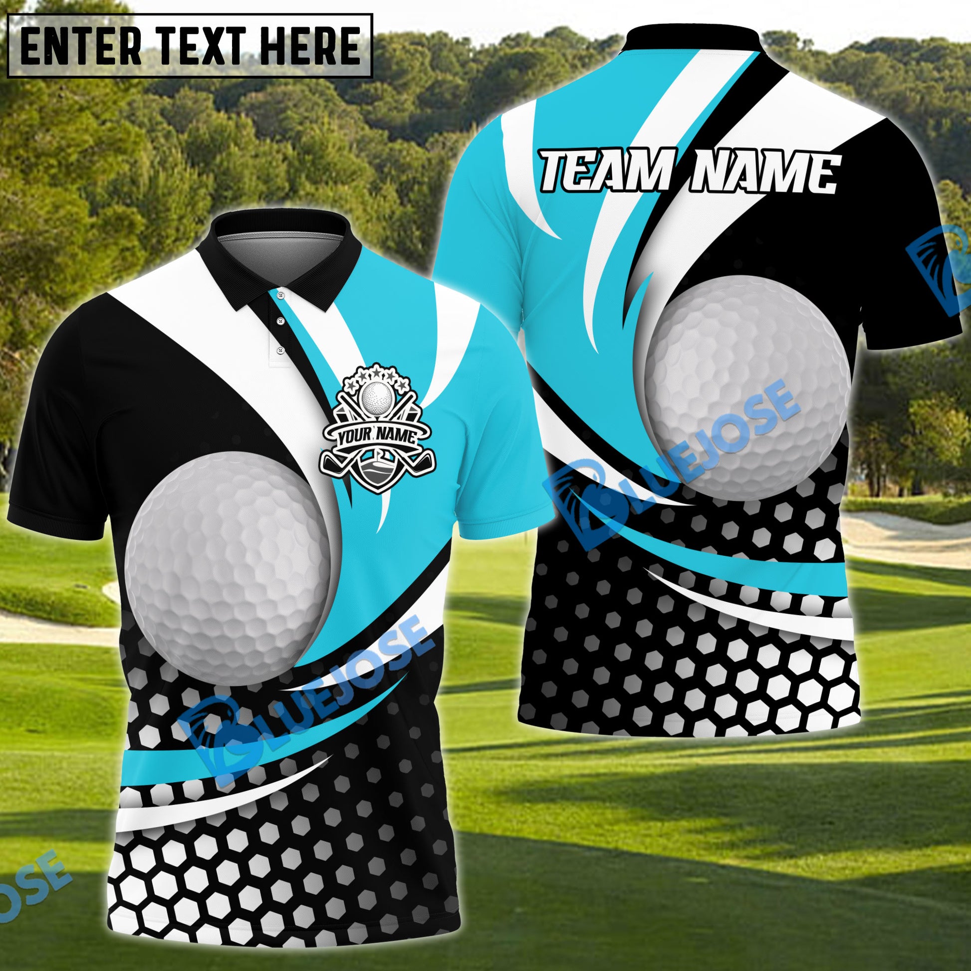 BlueJose Golf Curved Dot Pattern Customized Name, Team Name 3D Shirts (4 Colors)