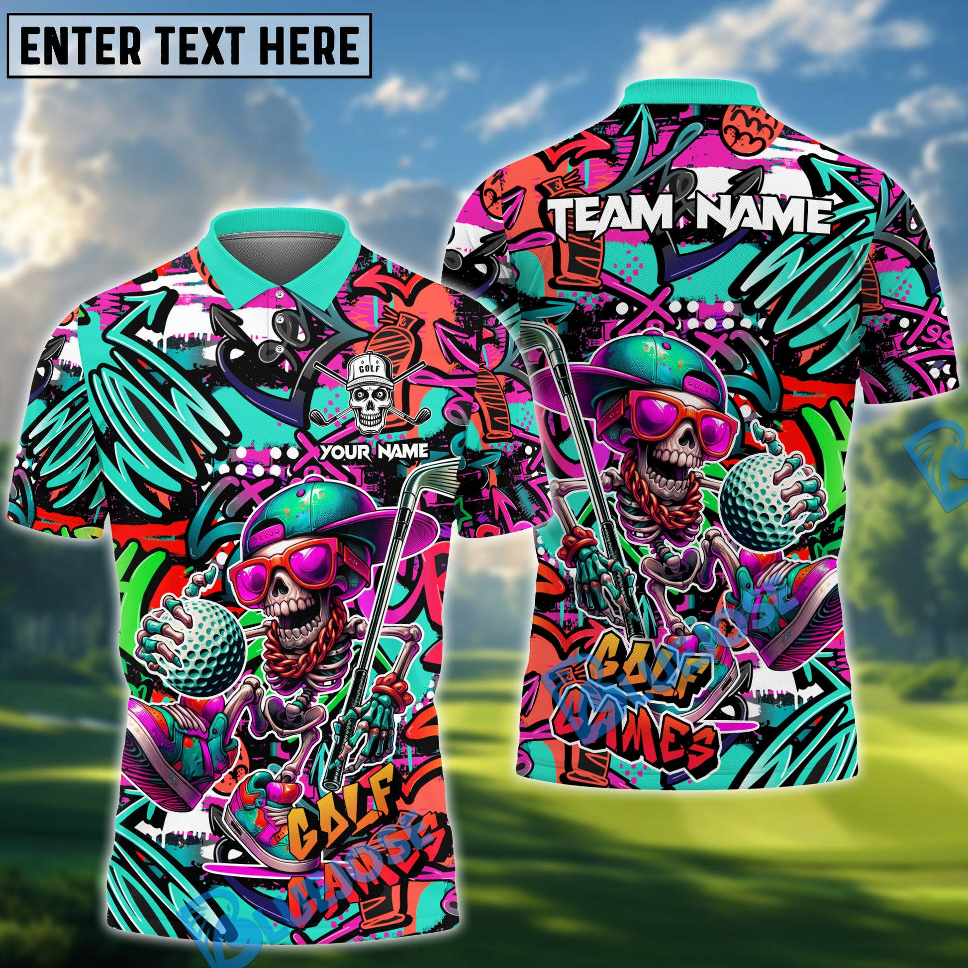 BlueJose Golf Funny Skull Colorful Graffiti Customized Name, Team Name 3D Shirts (4 Colors)