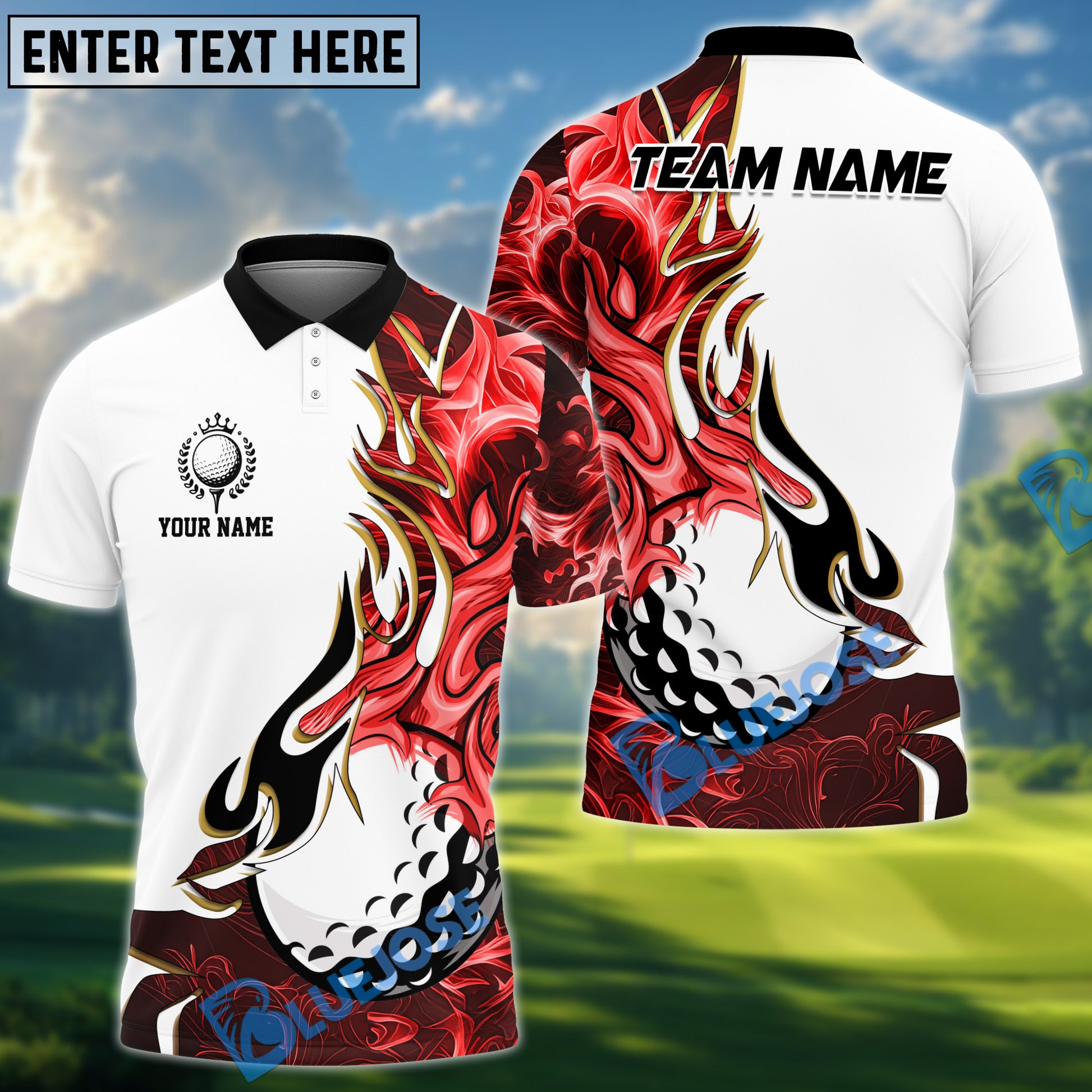 BlueJose Golf Golden Line Flame Art Design Multicolor Option Polo Shirt (6 Colors)