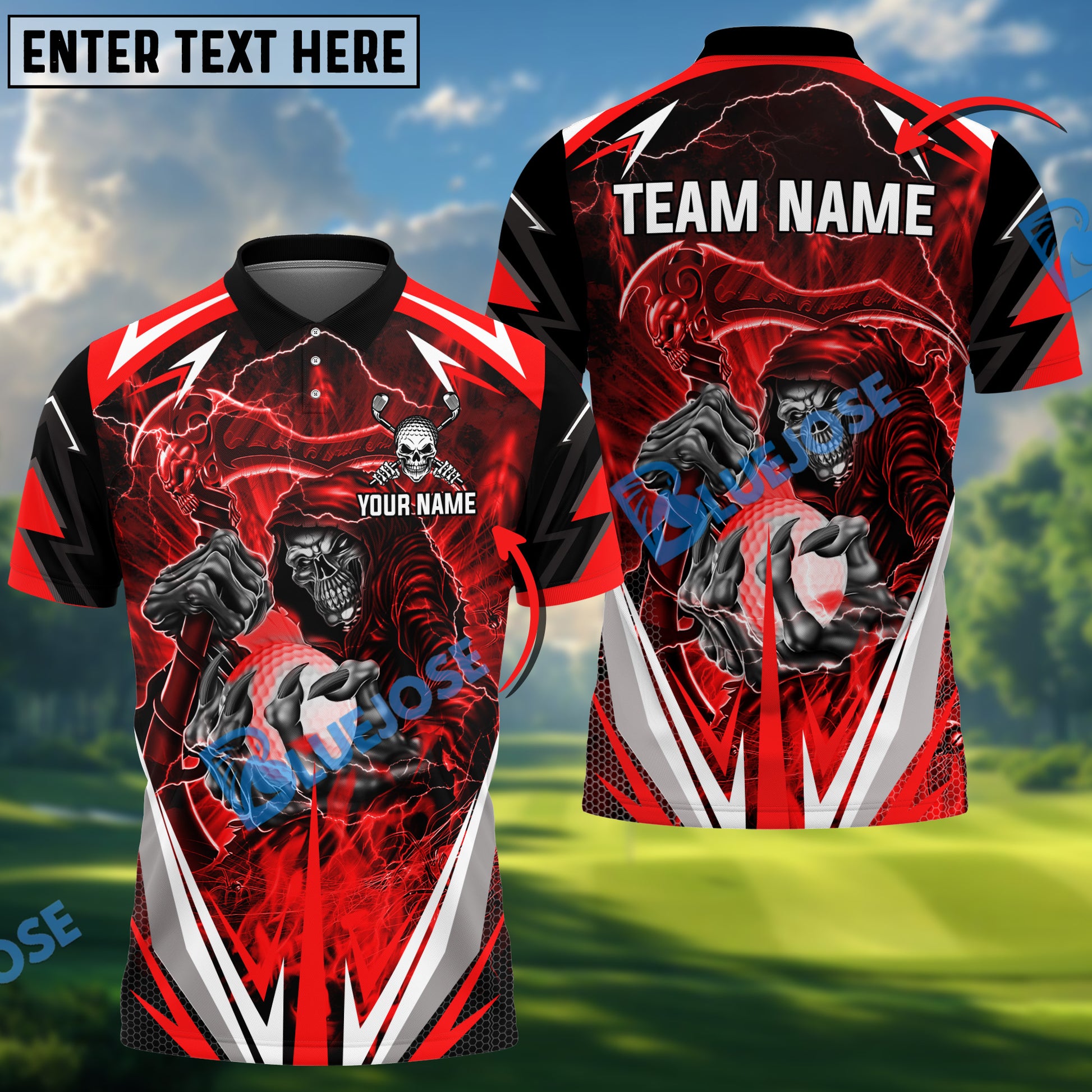 BlueJose Golf Lightning Reaper Customized Name, Team Name 3D Shirts (4 Colors)