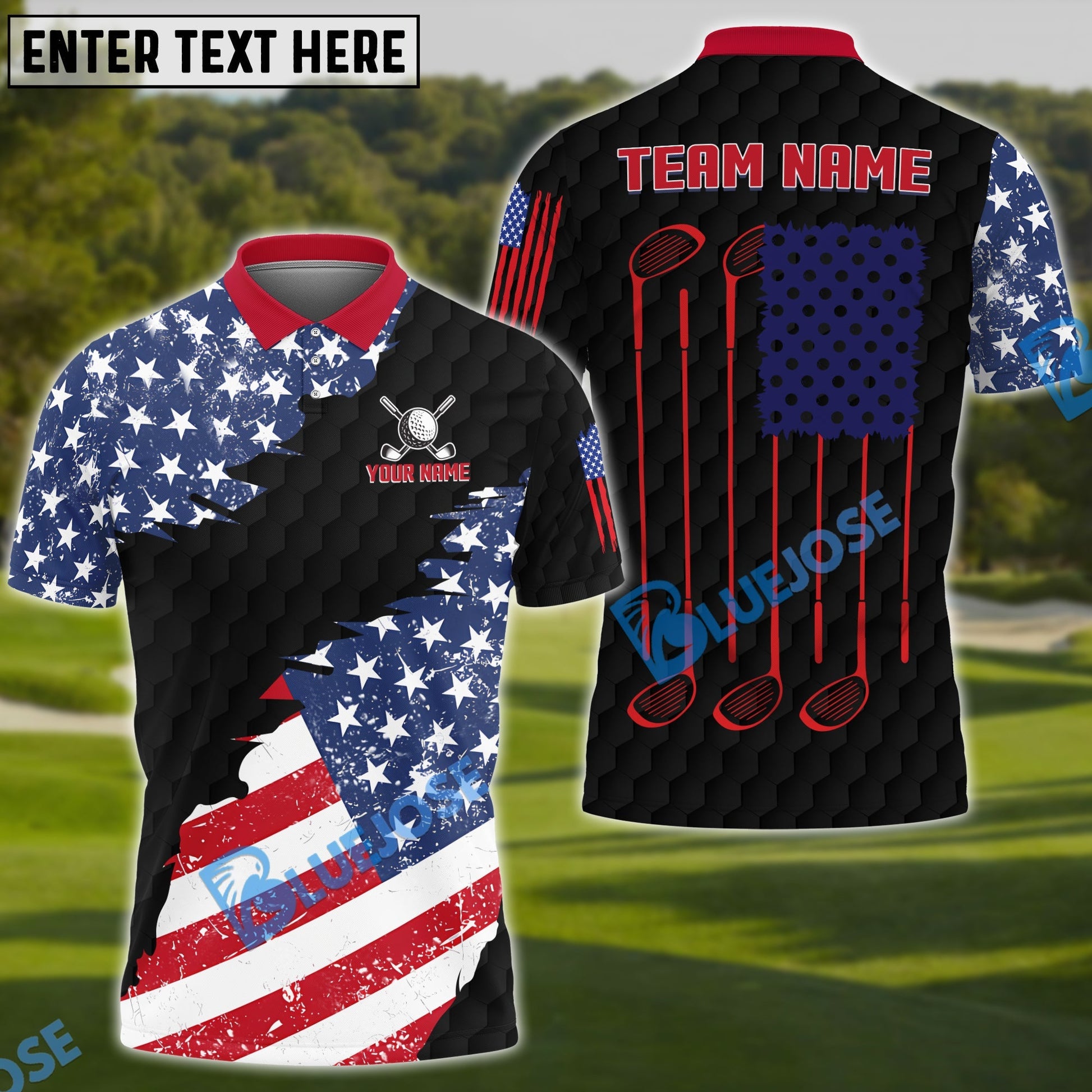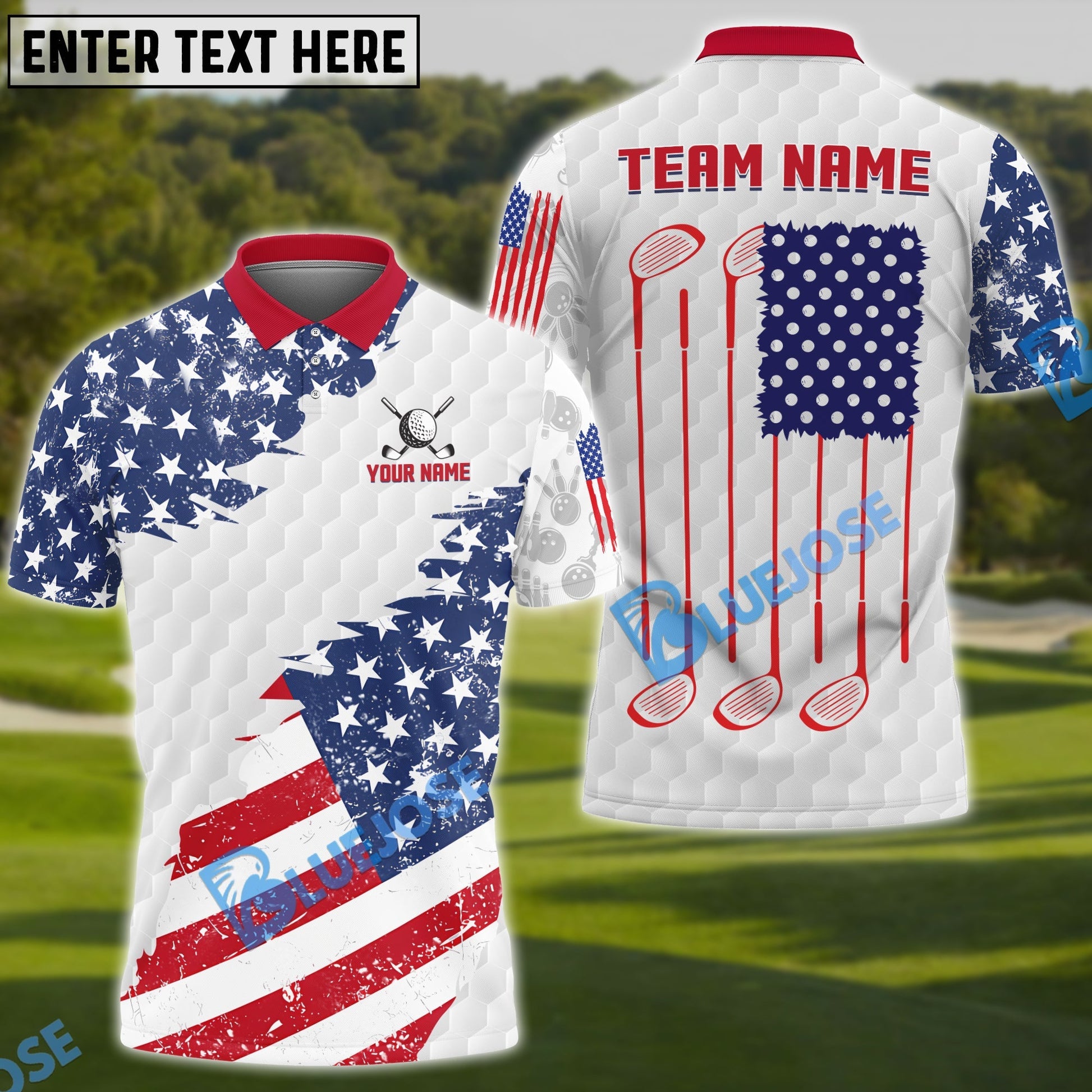 BlueJose Golf US Flag White Red Customized Name, Team Name 3D Shirts
