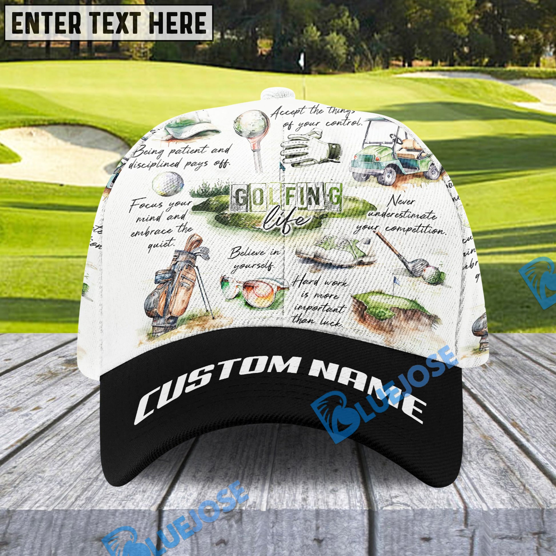BlueJose Golfing Life Golf Cap, Personalized Name Pattern 3D Classic Cap