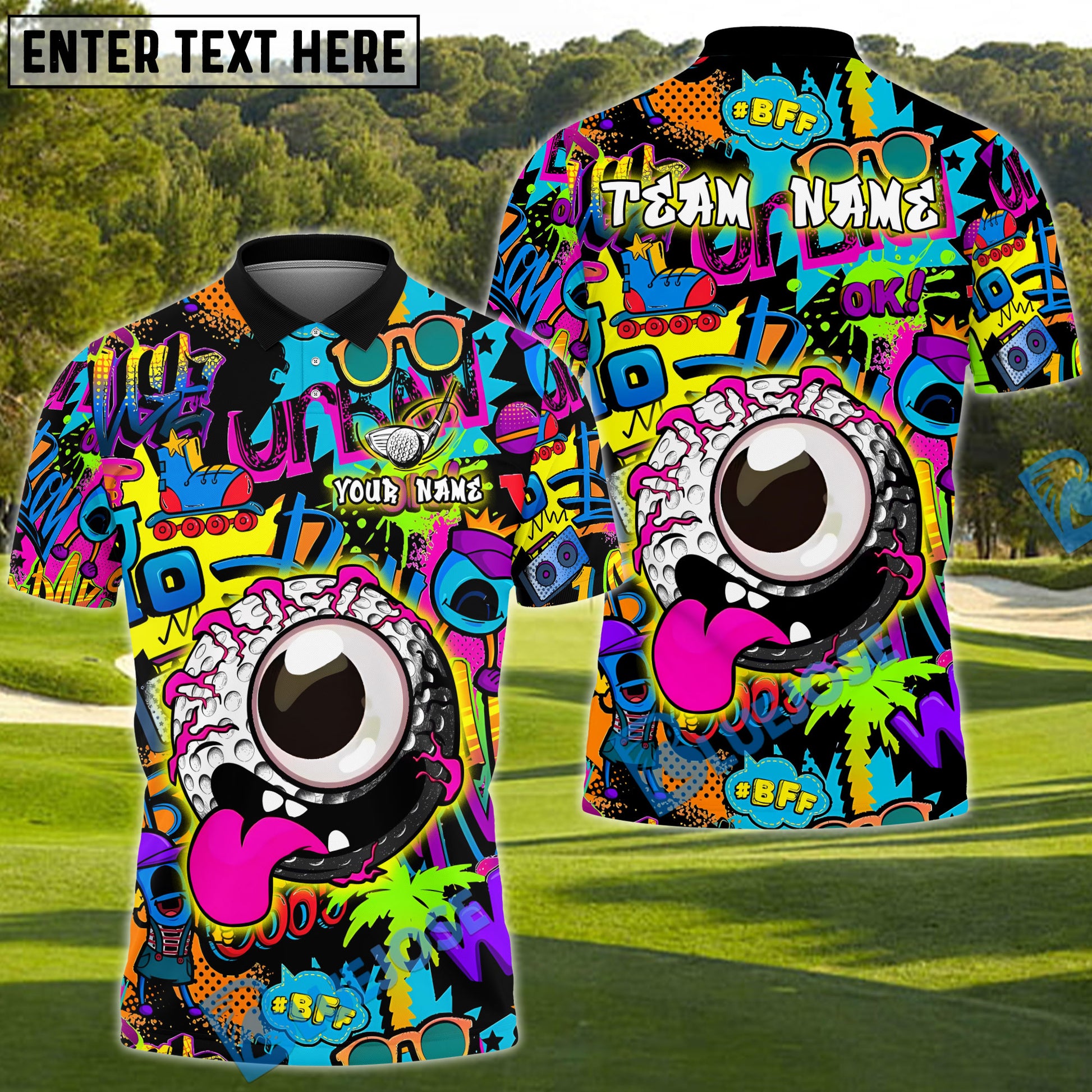 BlueJose Graffiti Golf Monster Funny Golf Polo Shirt, Custom Name & Team Name 3D Shirts