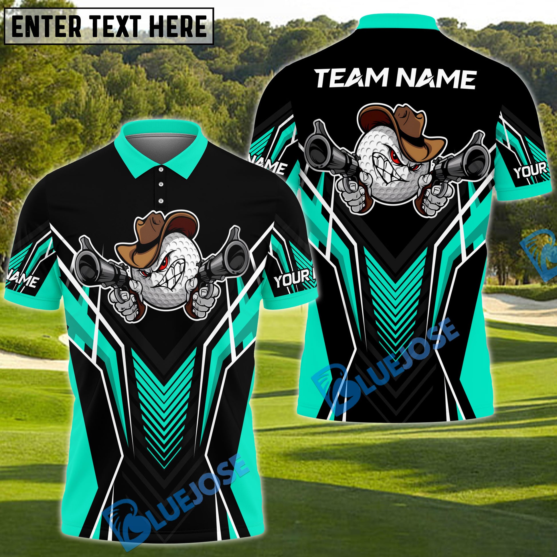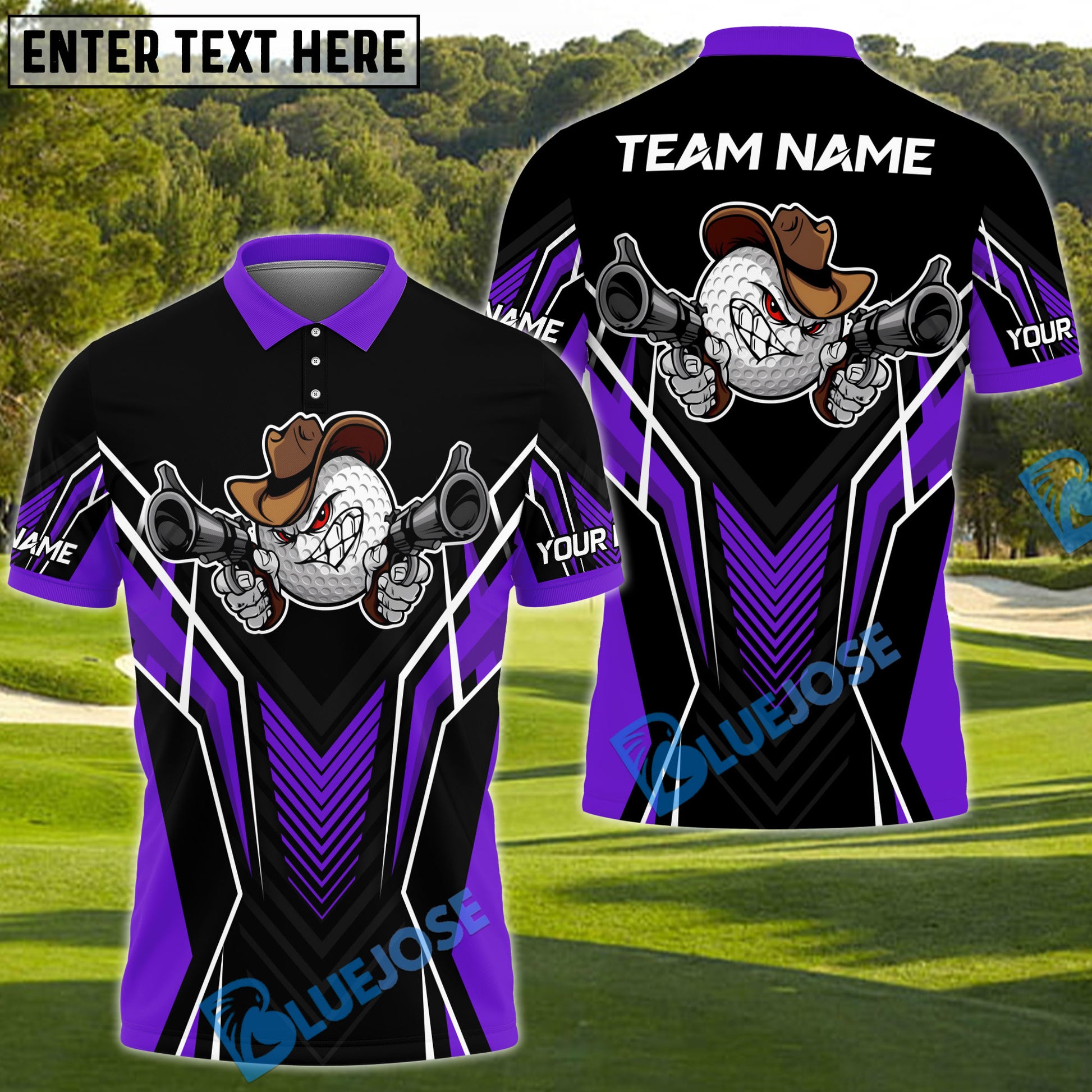 BlueJose Gunshot Swing Funny Golf Polo Shirt, Customized Name & Team Name 3D Shirts (4 Colors)