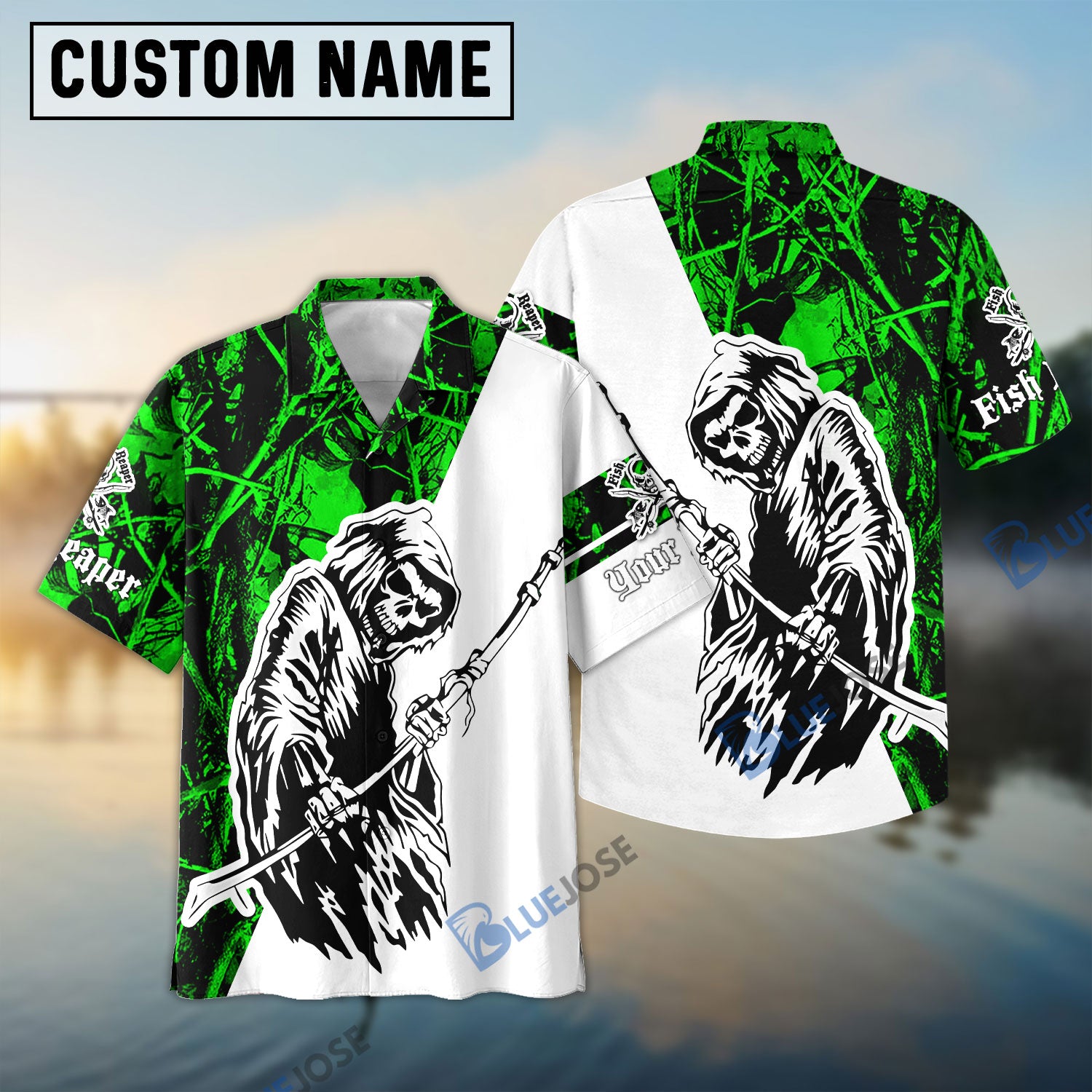 BlueJose Halloween Fish Reaper Green Camo Custom Name 3D Shirt