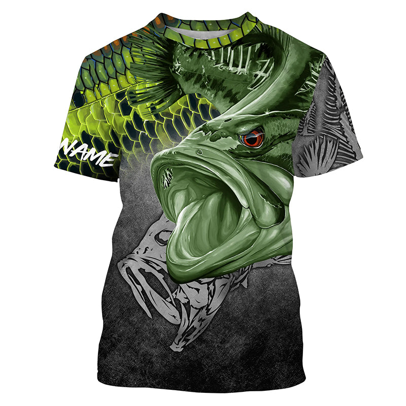 BlueJose Largemouth Bass Reaper Fish Skeleton Custom Name Fishing Shirt