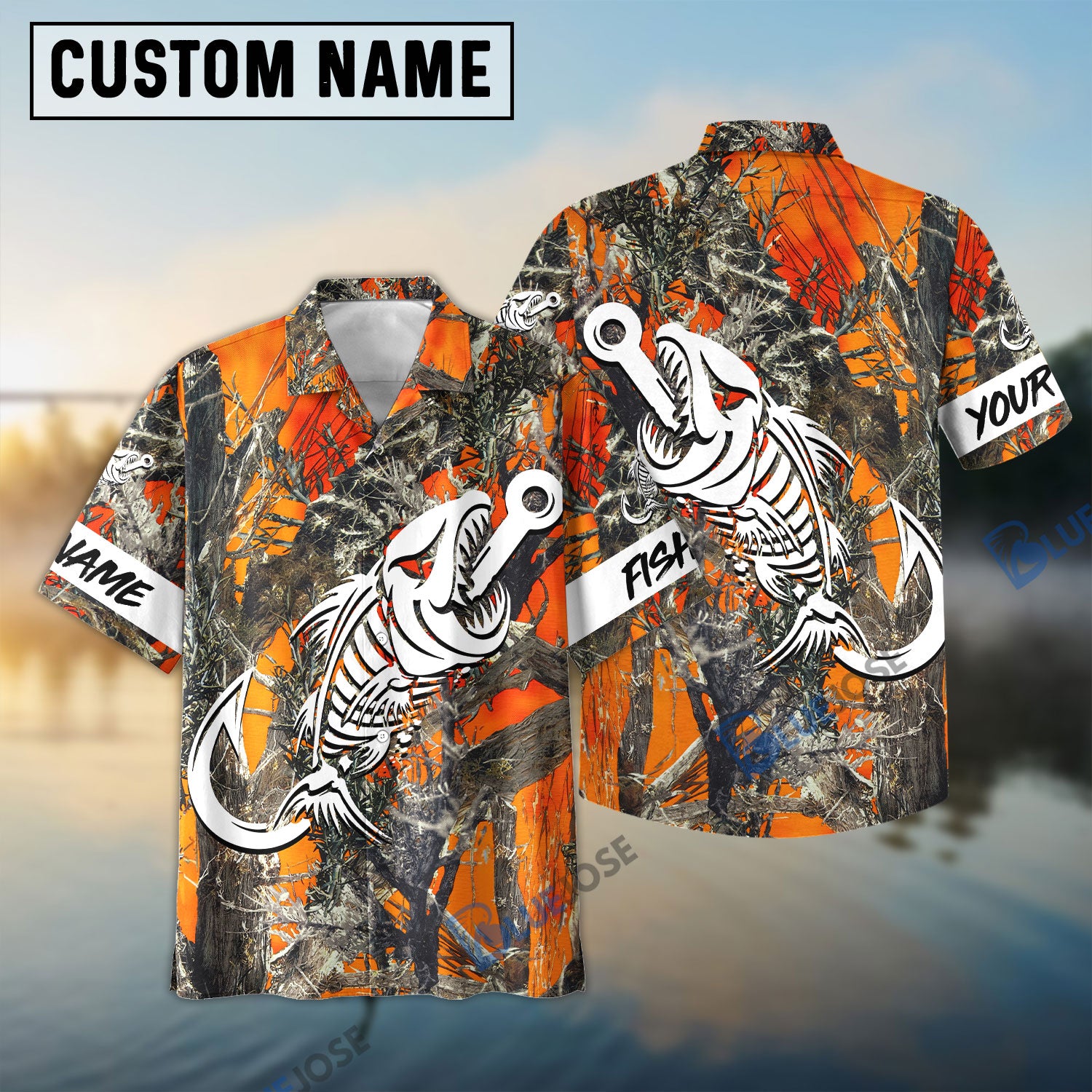 BlueJose Orange Camo Fish Hook Skull Custom Name 3D Shirt