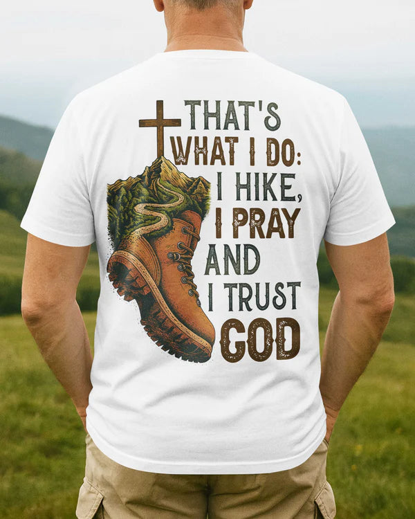 BlueJose Hike I Pray And I Trust God Personalized Hiking 3D Shirt - White