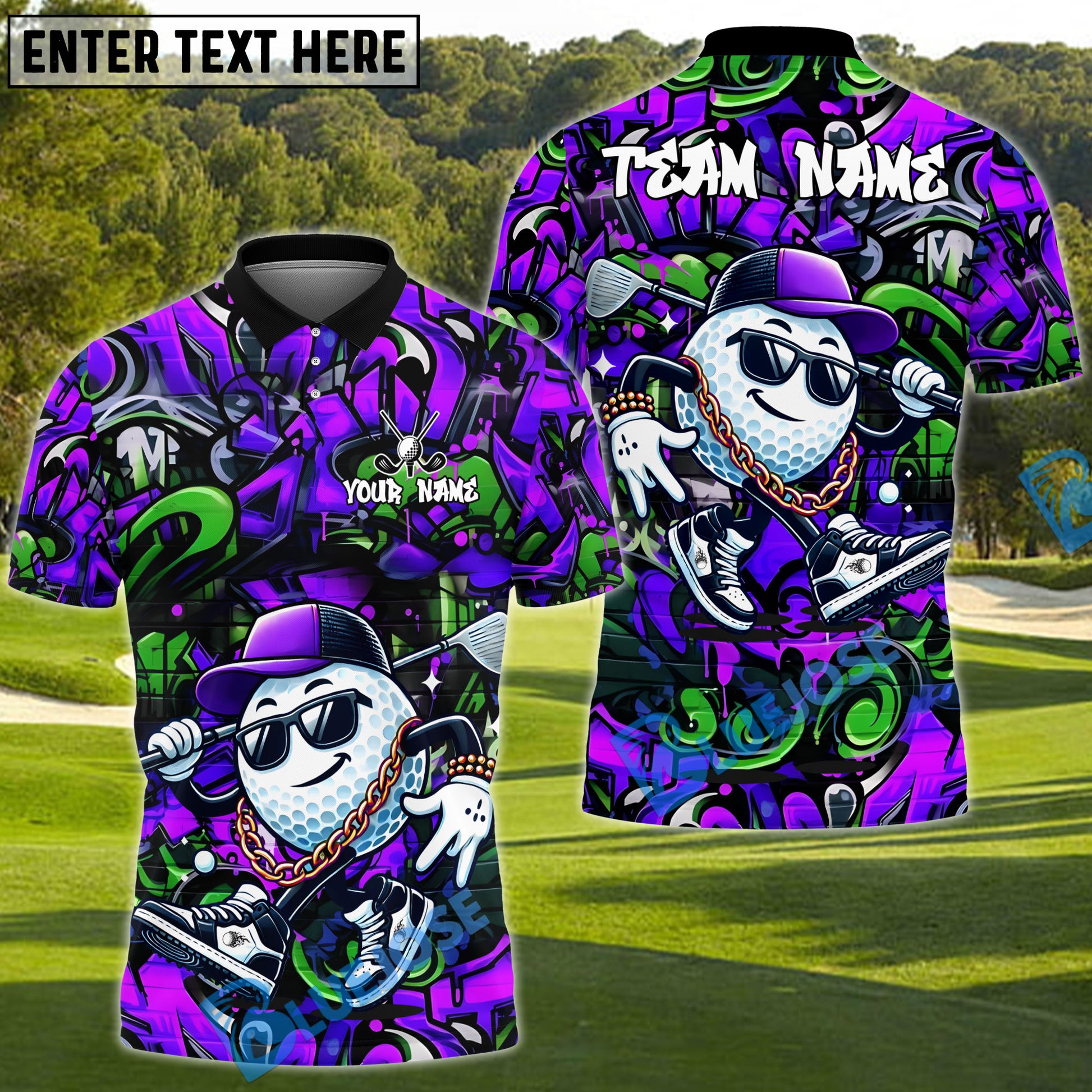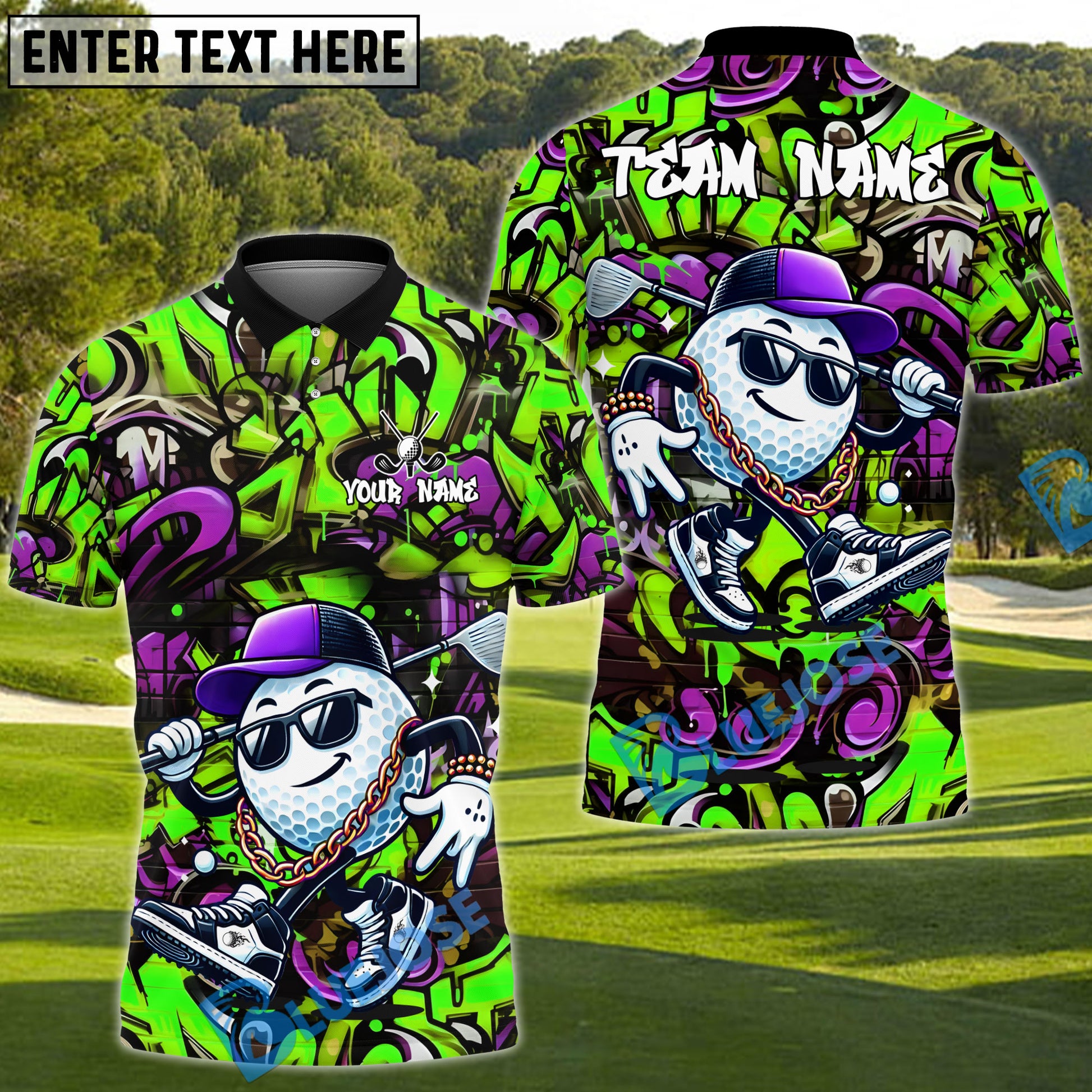 BlueJose Hip Hop Golf Ball Shirt, Customized Name & Team Name 3D Shirts (4 Colors)