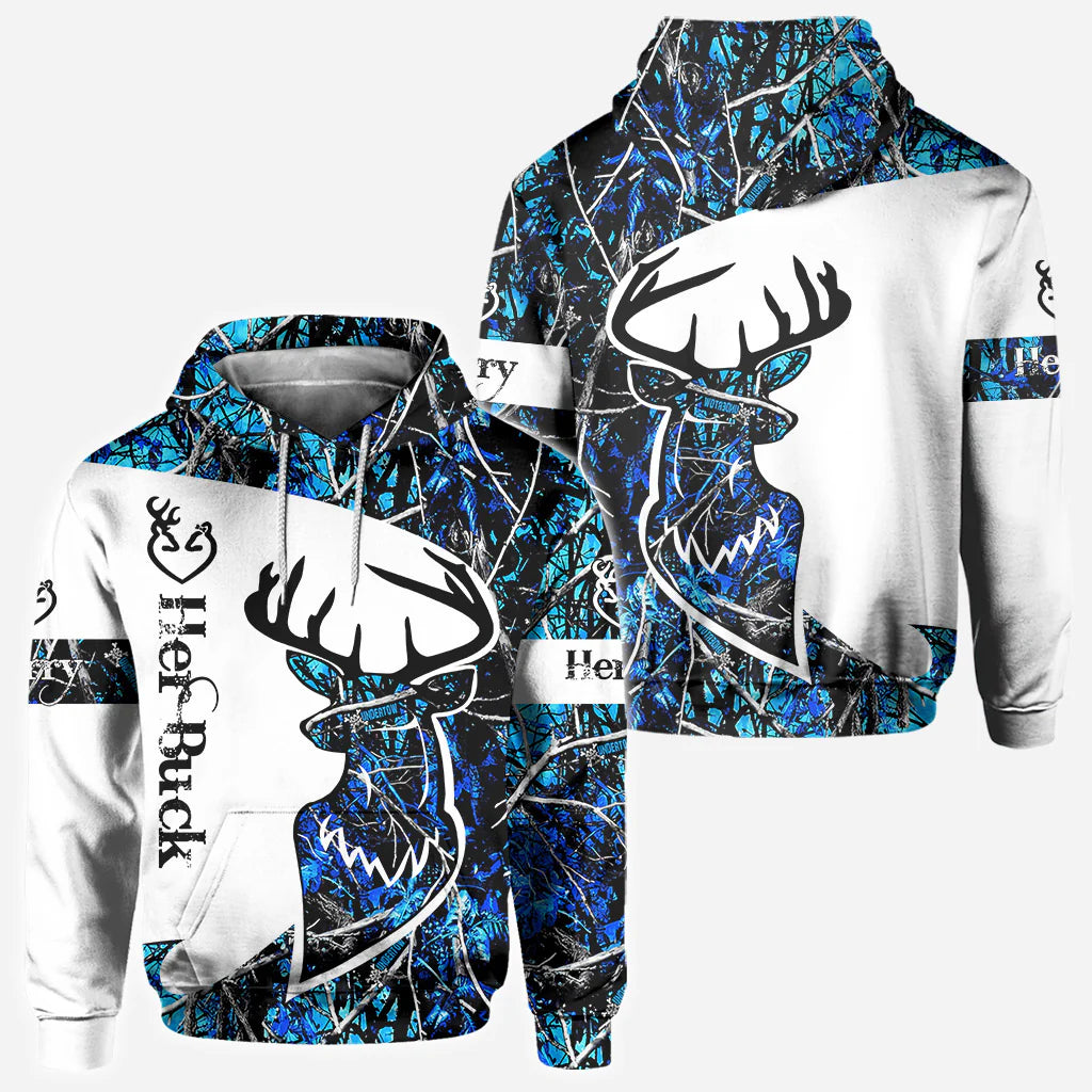 BlueJose Her Buck His Doe, Personalized Hunting All Over Shirt, Personalized 3D Hoodie For Hunting Lover