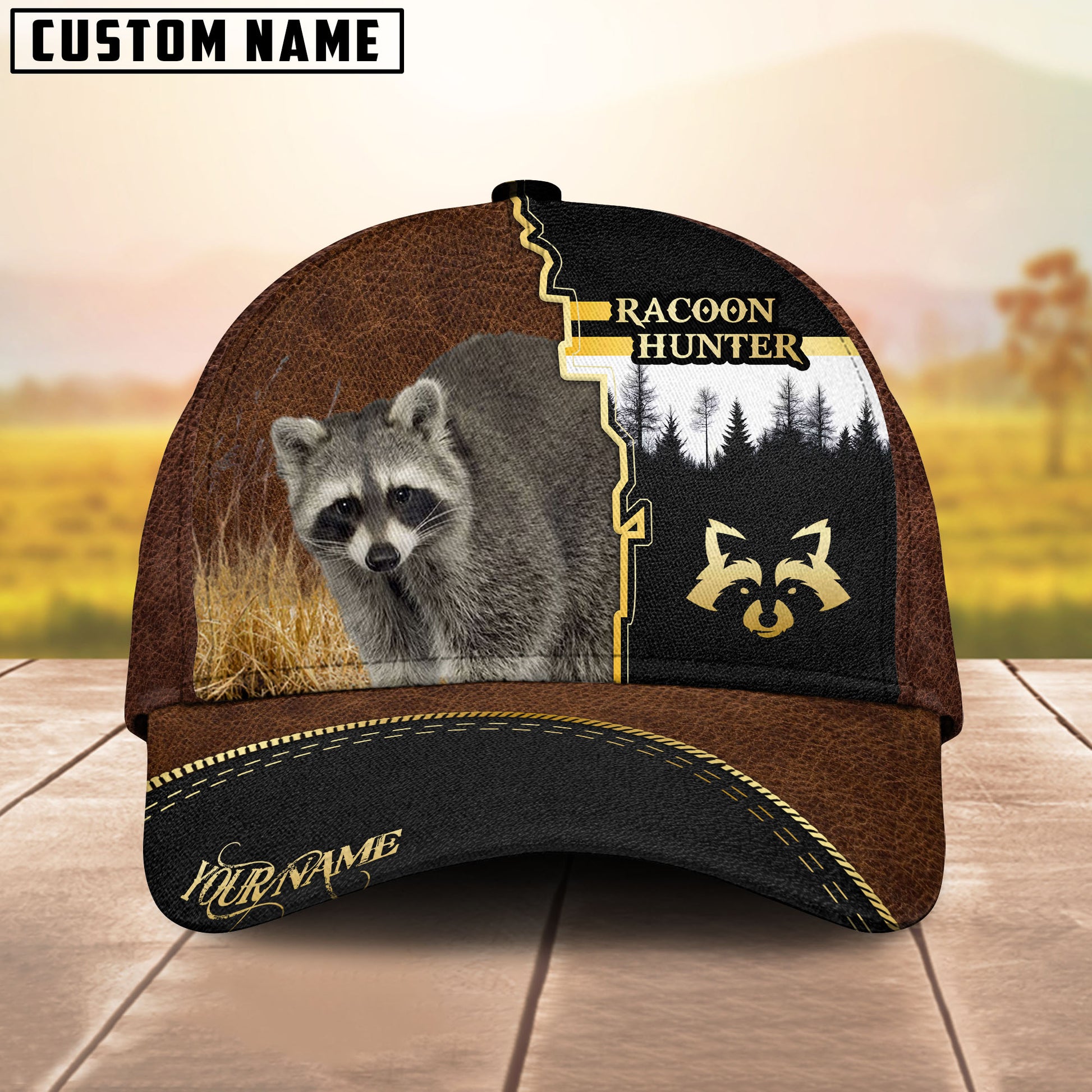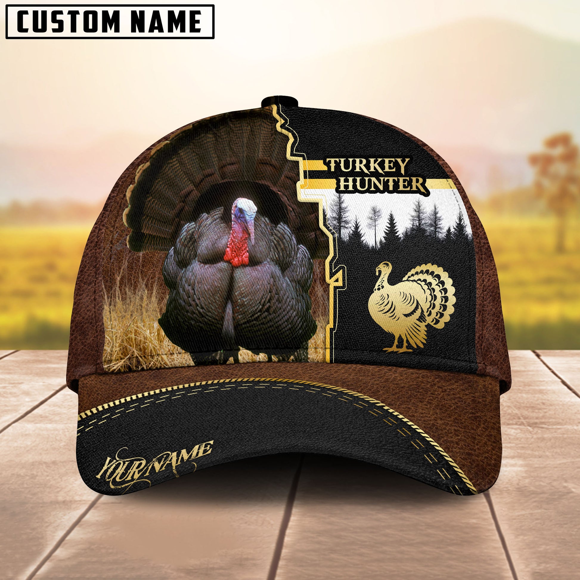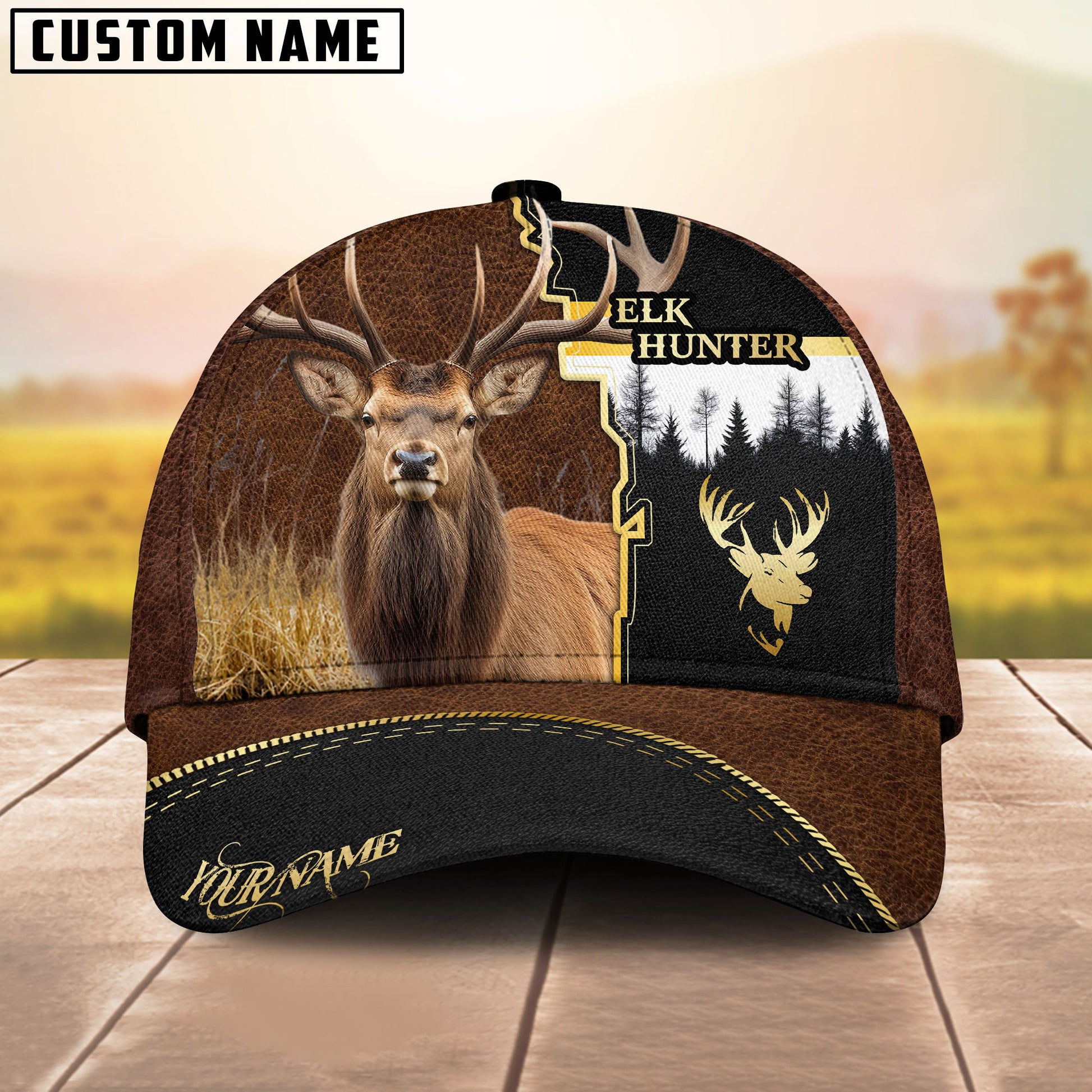 BlueJose Hunting Brown Leather Style Multicolor Options Personalized Name 3D Cap (6 color)