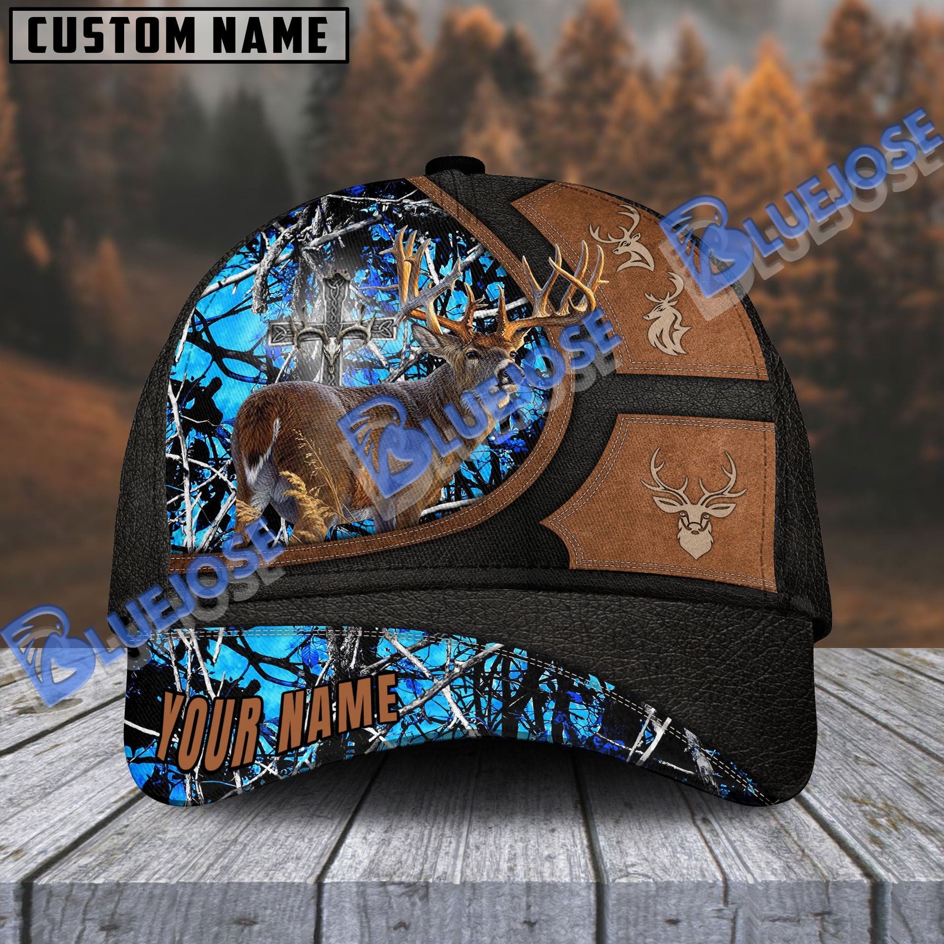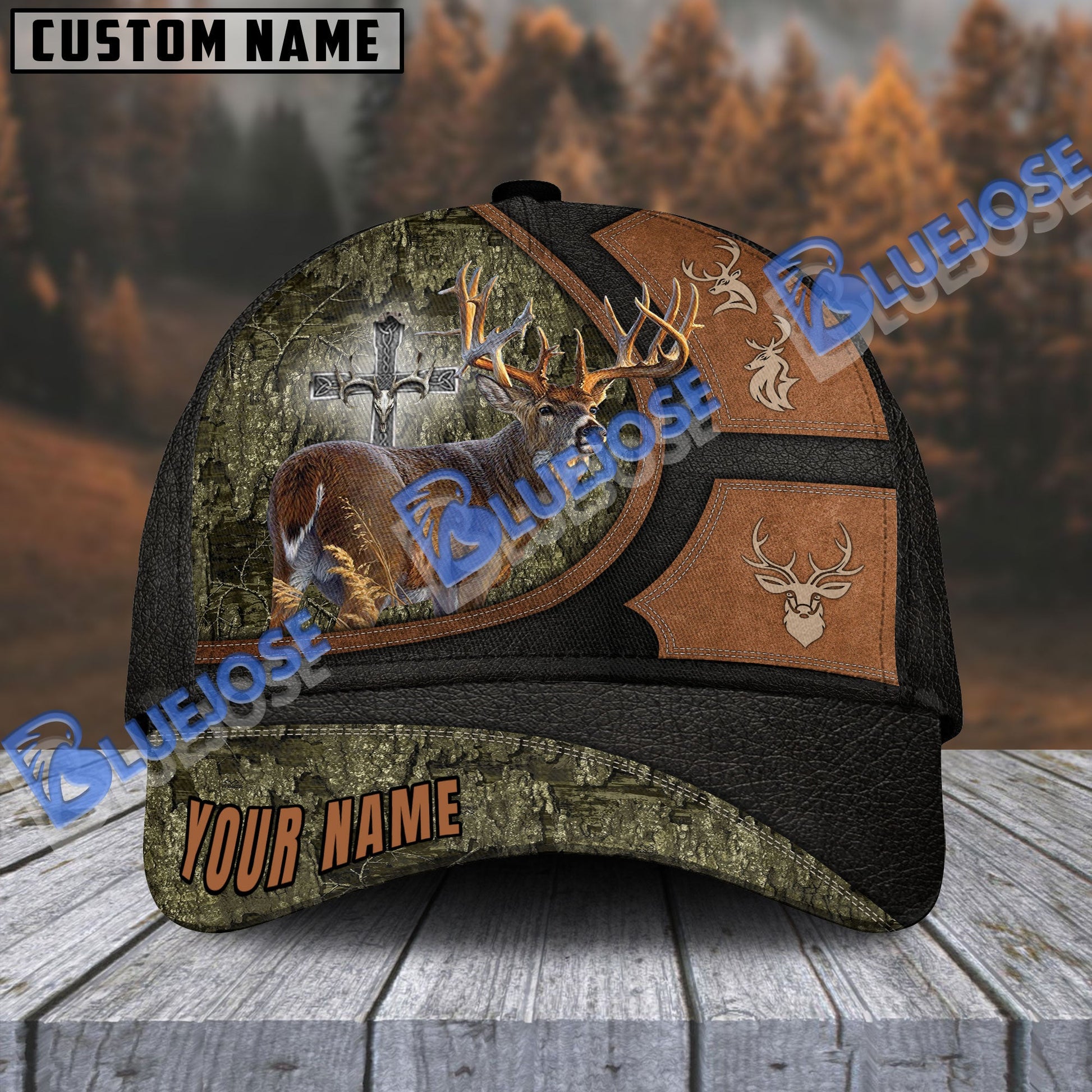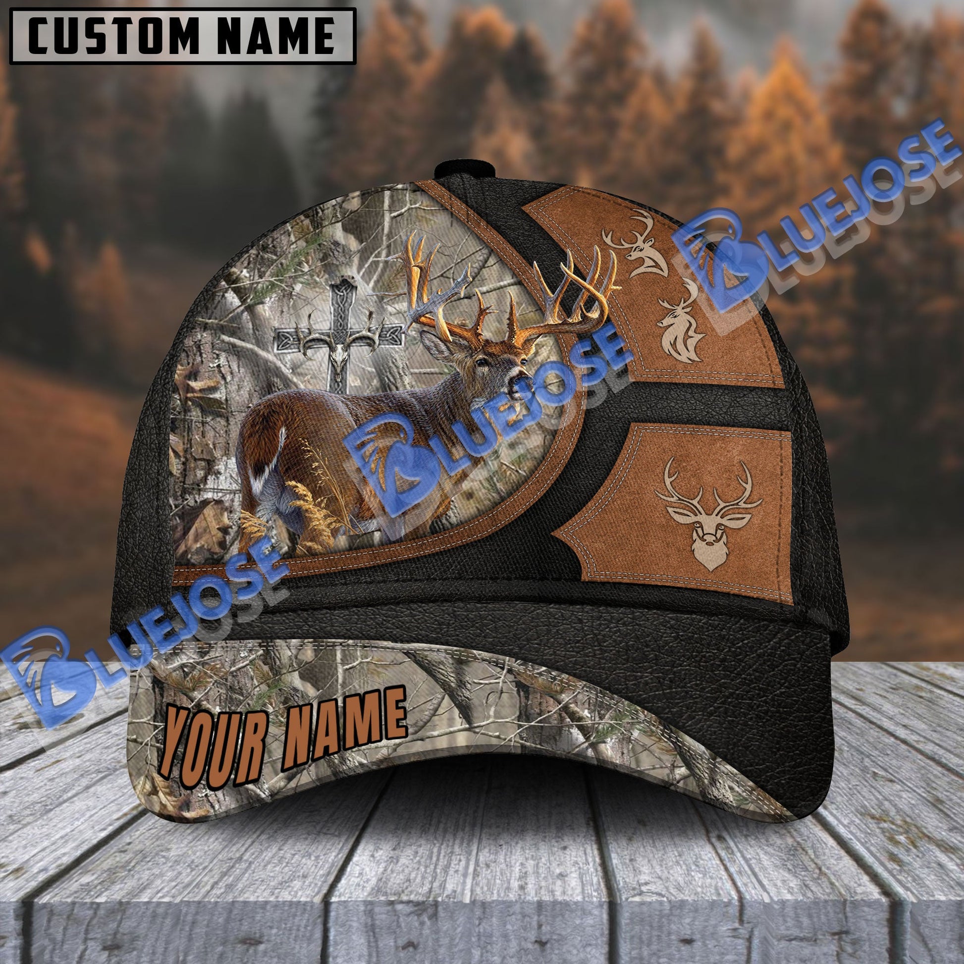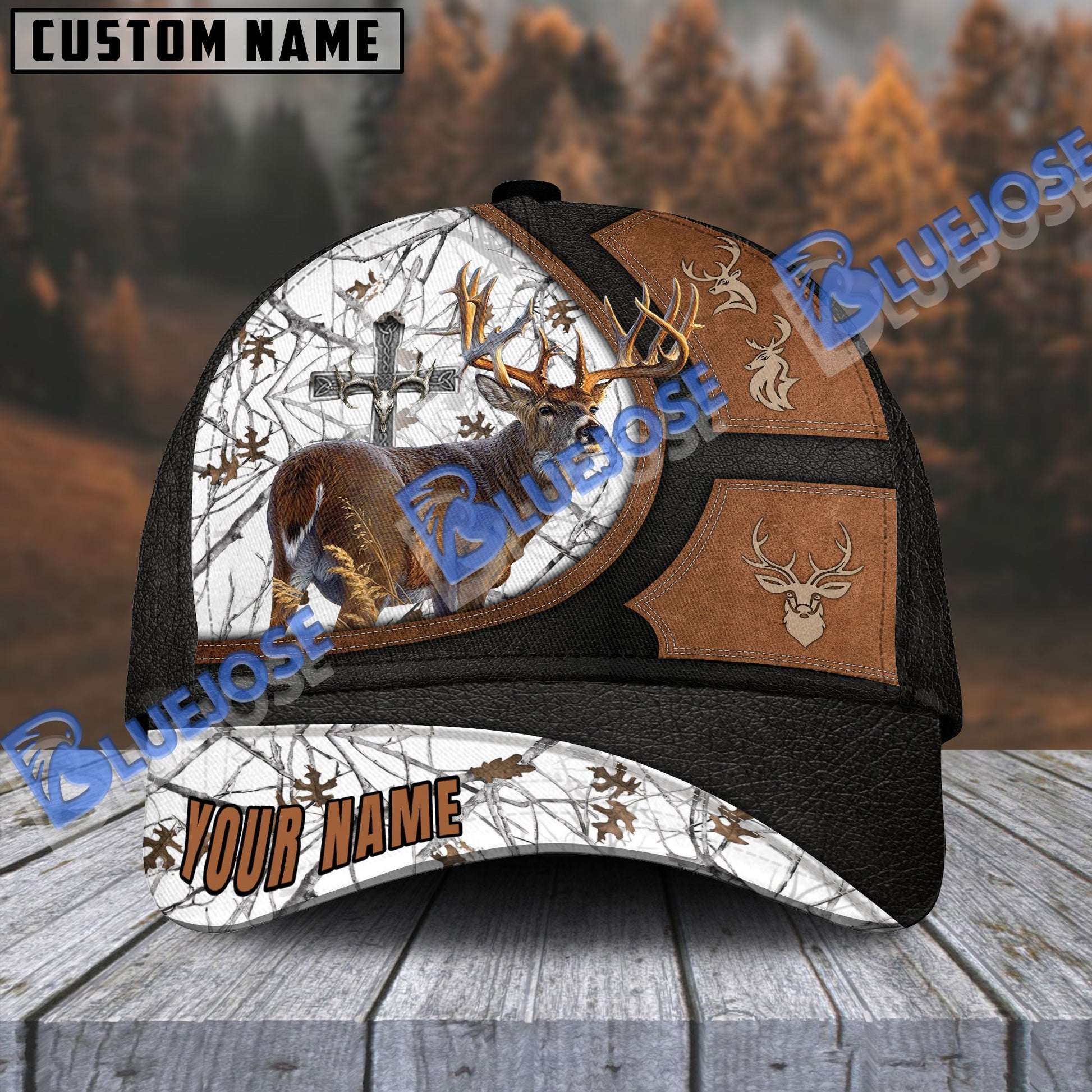 BlueJose Hunting Deer Cross Leather Black And Brown Pattern Multicolor Personalized Cap