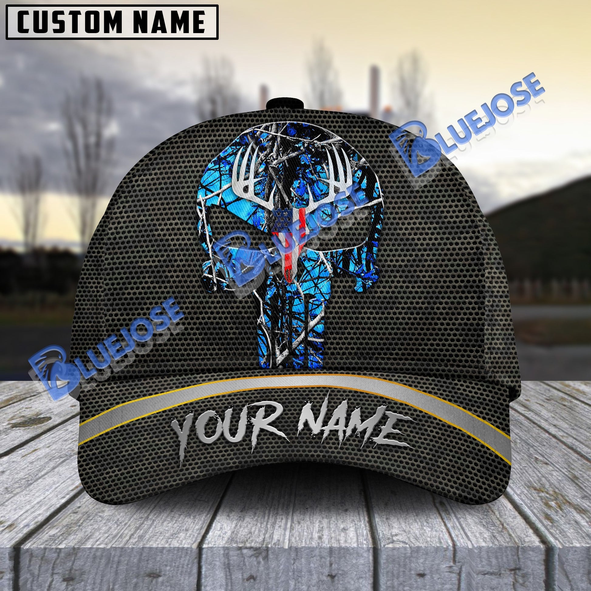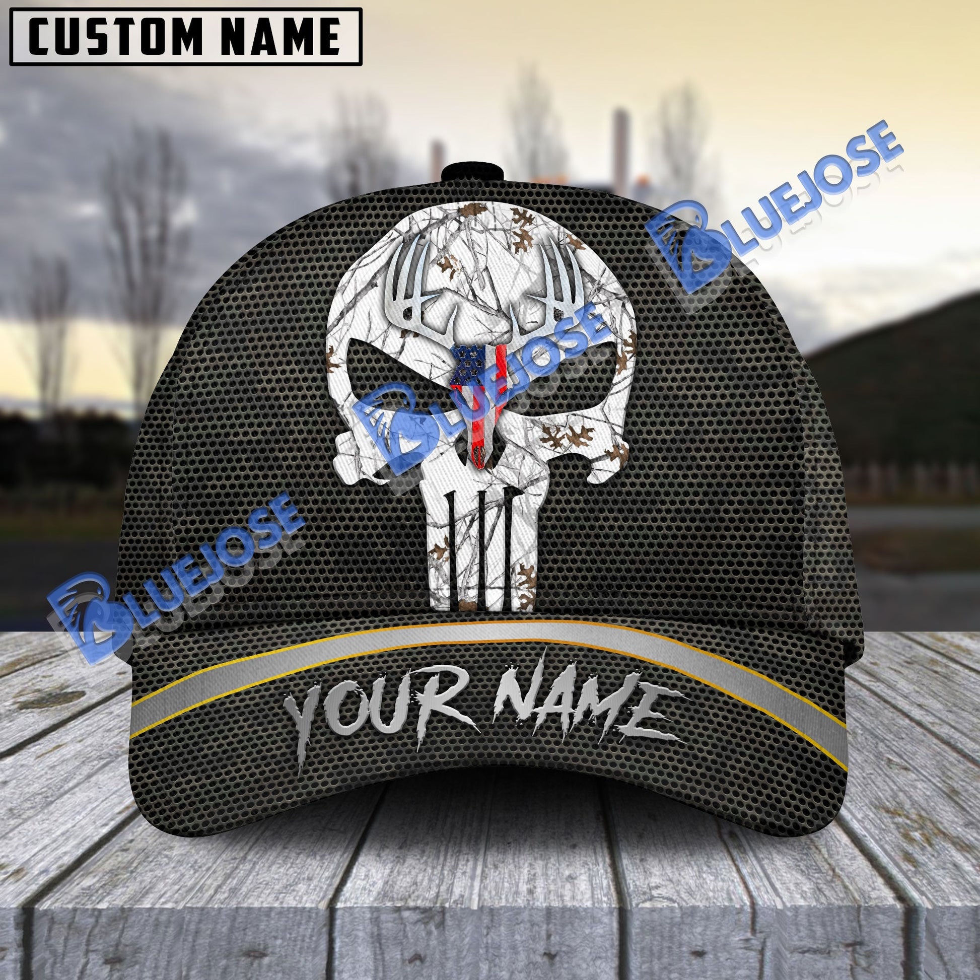 BlueJose Hunting Deer Punisher Skull American Flag Camo Pattern Multicolor Personalized Cap