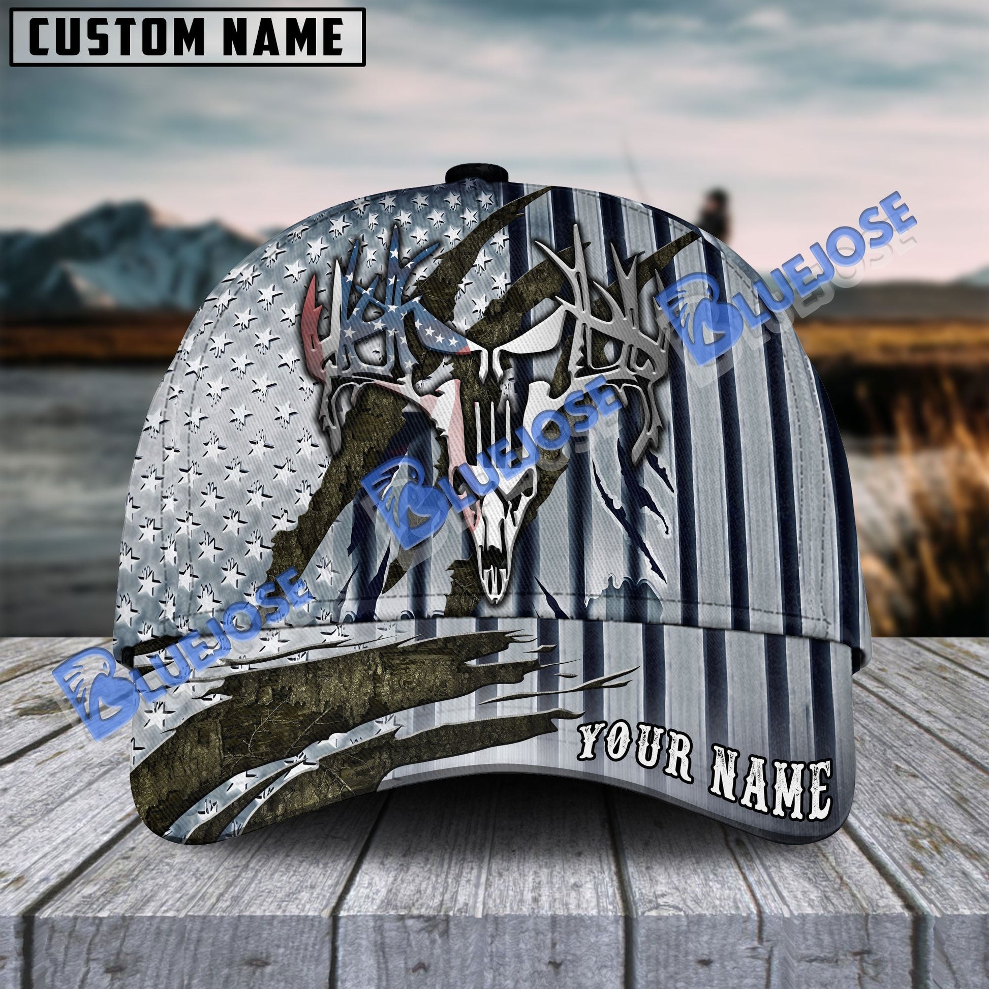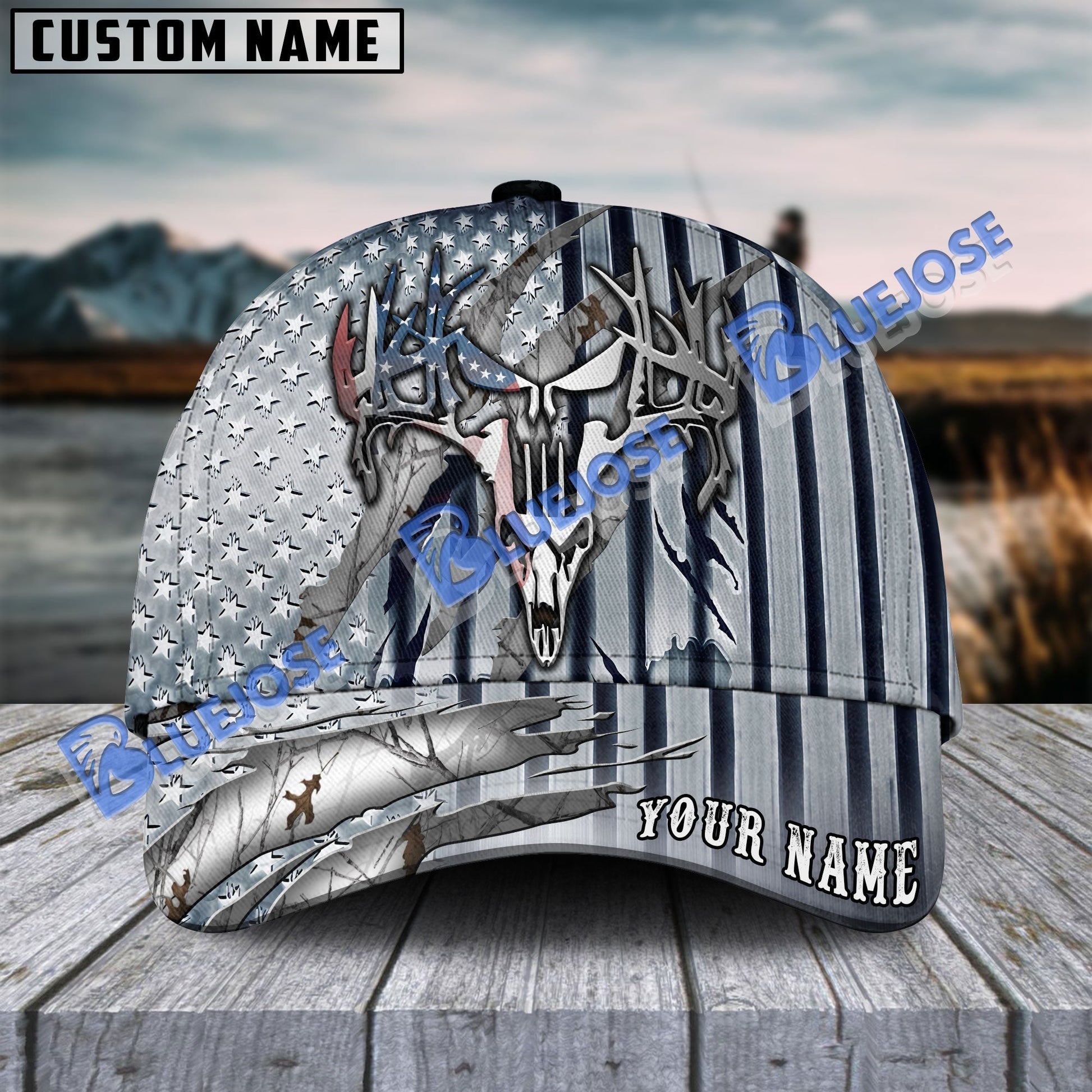 BlueJose Hunting Deer Punisher Skull Metal American Flag Camo Pattern Multicolor Personalized Cap