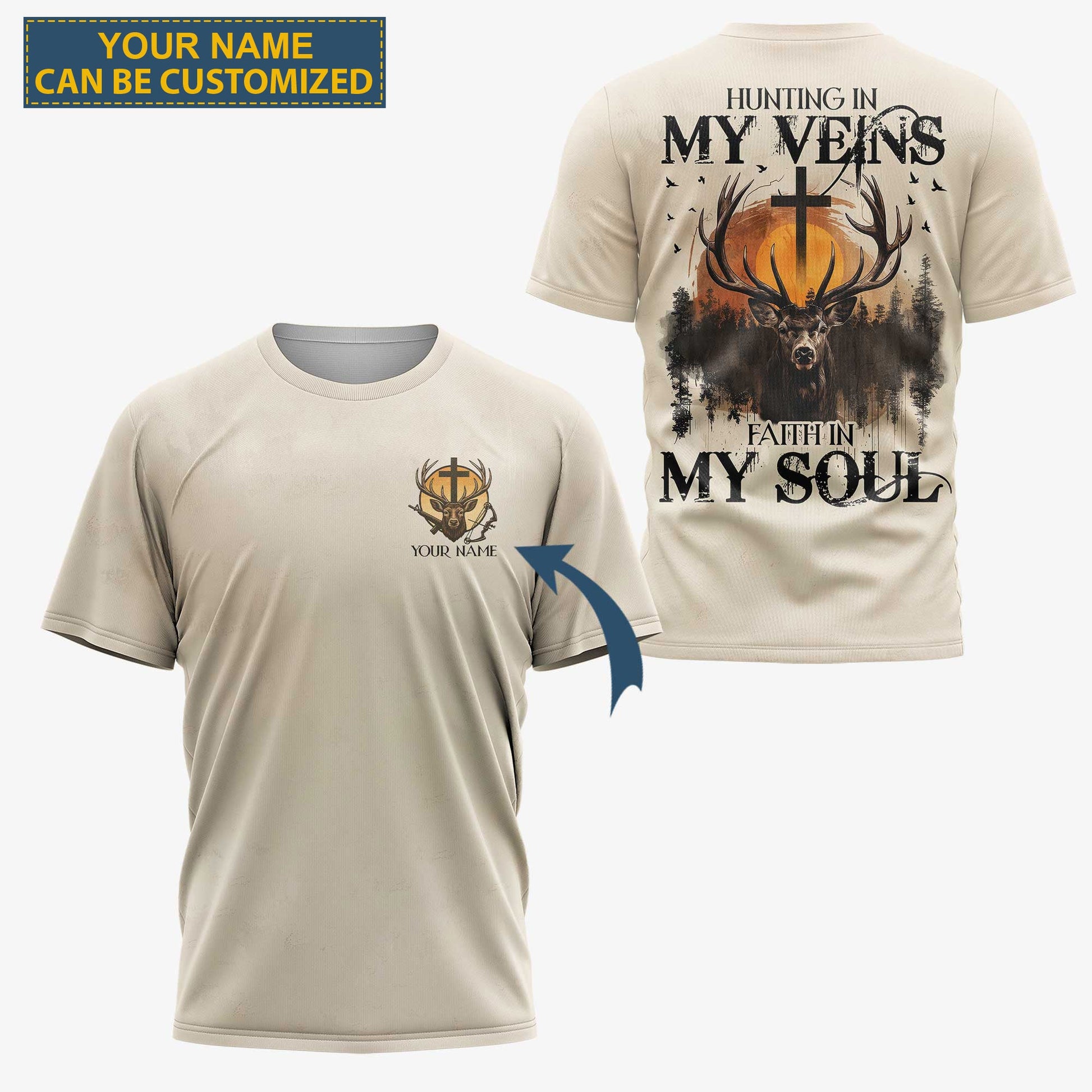 BlueJose Hunting In My Veins Faith In My Soul Shirt, Personalized Hunting 3D Shirt