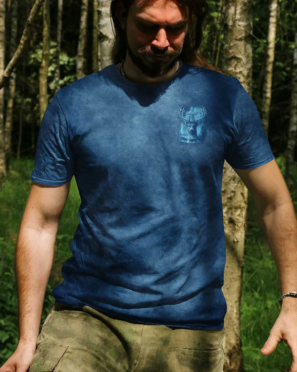 BlueJose I've Got Hunting In My Veins And Jesus In My Heart Blue Shirt, Personalized Hunting 3D Shirt