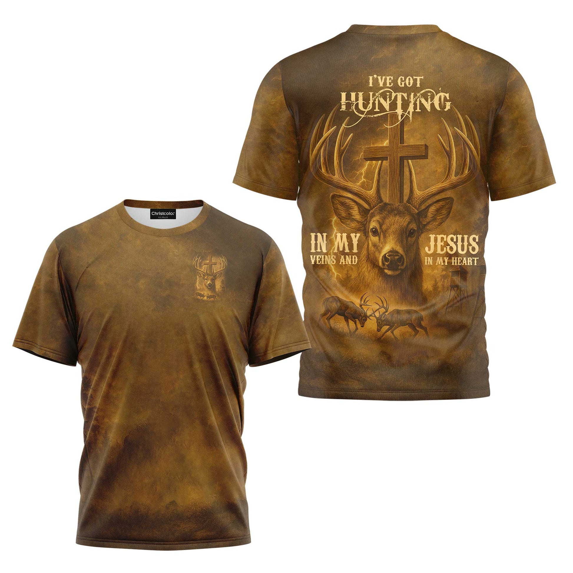BlueJose I've Got Hunting In My Veins And Jesus In My Heart Custom Name Shirt, Personalized Hunting 3D Shirt