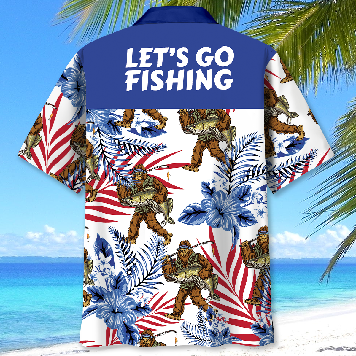 BlueJose Let's Go Fishing Bigfoot Hawaiian Shirt
