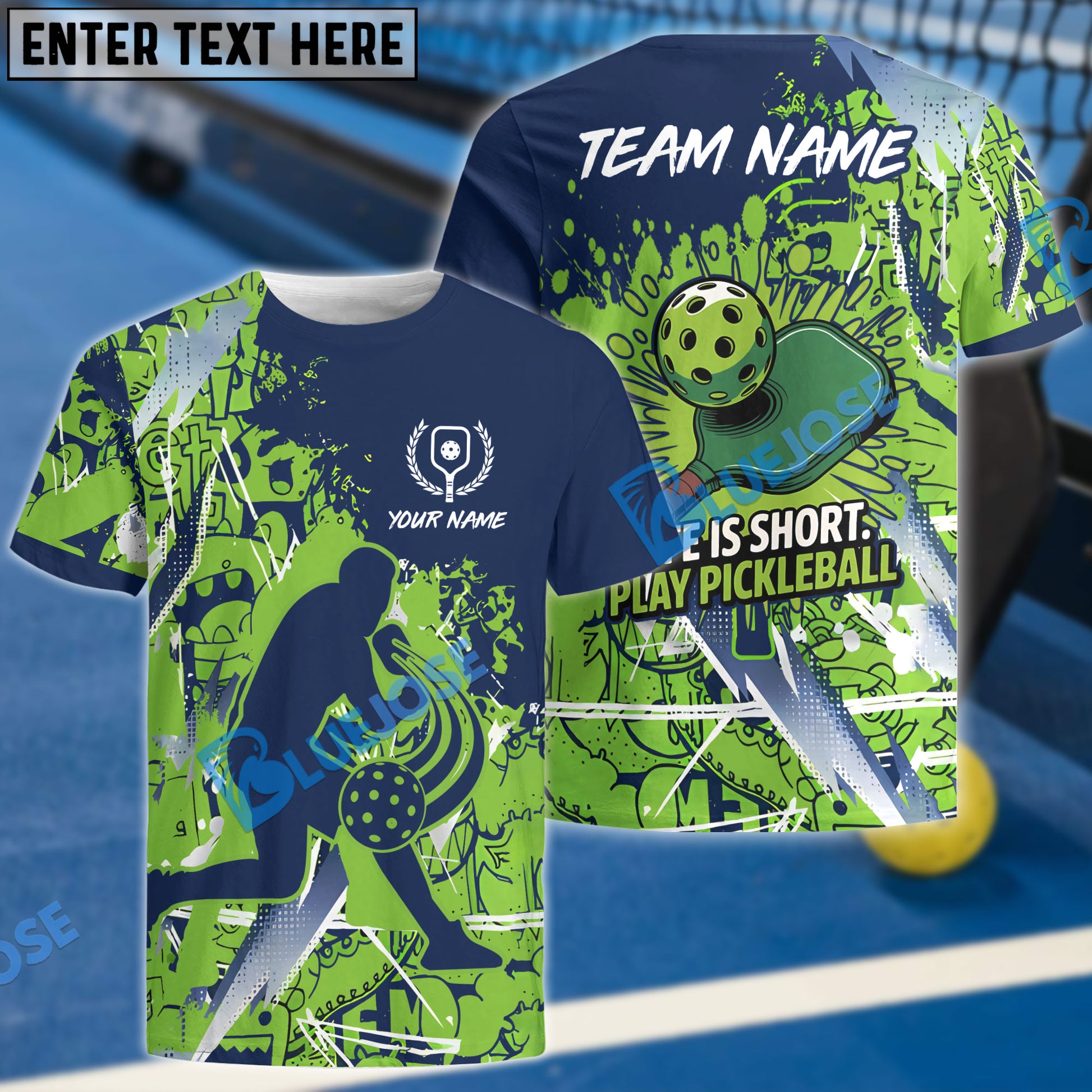 BlueJose Life Is Short, Play Pickleball Pickleball Personalized Name, Team Name Unisex Shirt