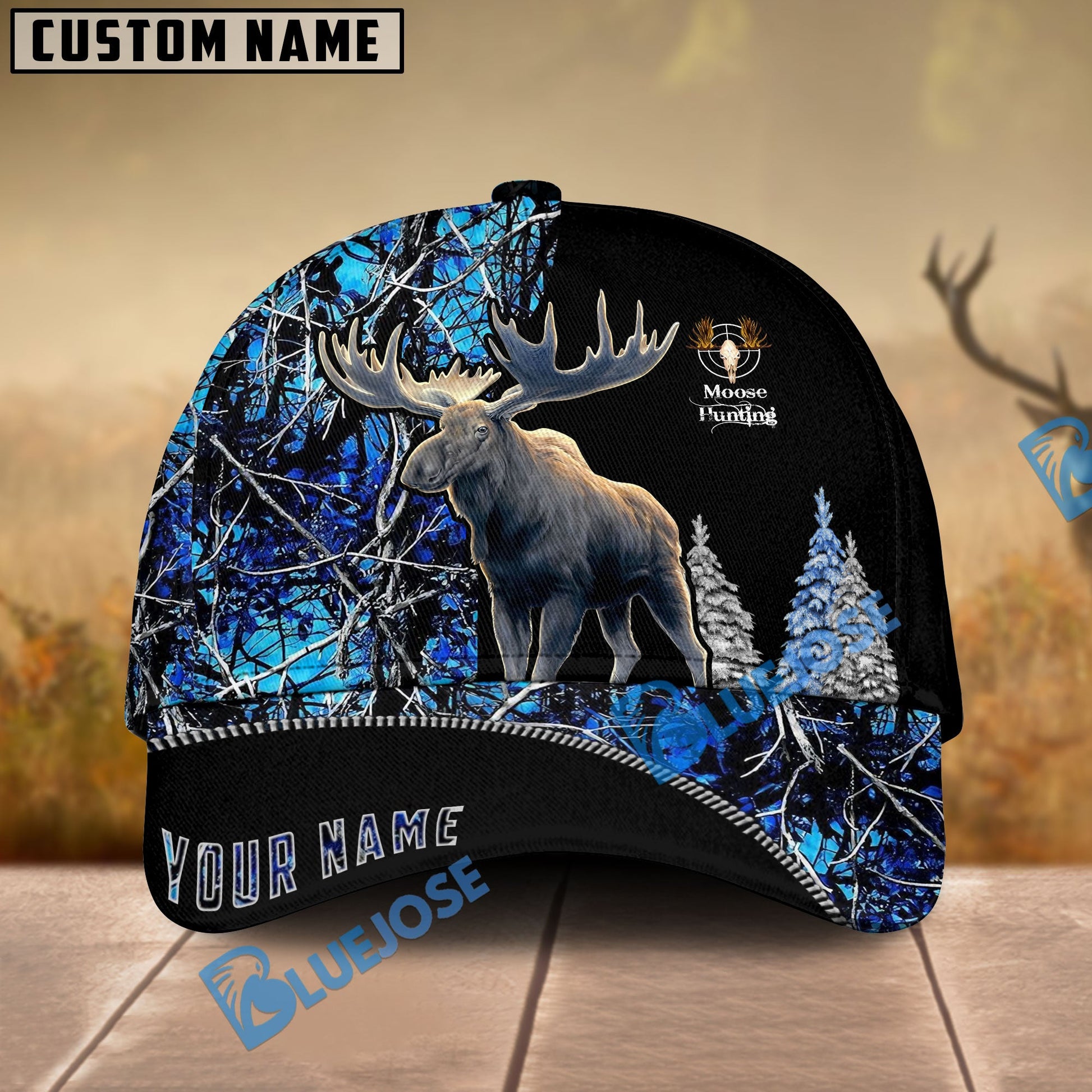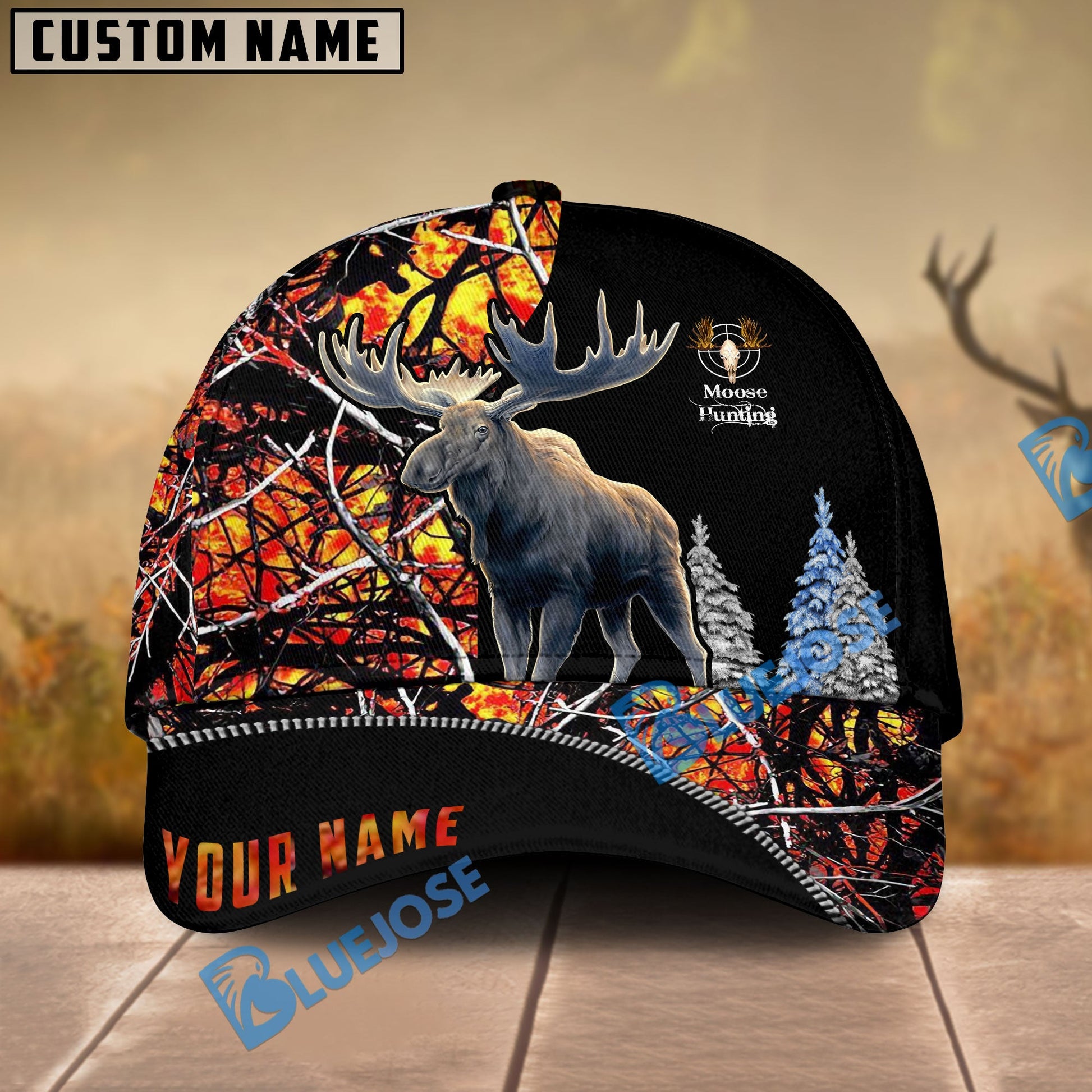 BlueJose Loralle Moose Hunting Multicolor Personalized Cap