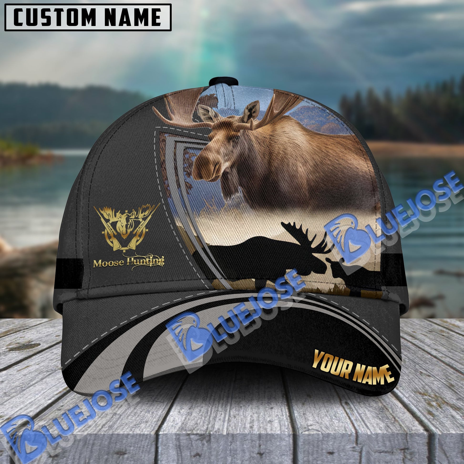 BlueJose Master Moose Hunting Gray And Black Personalized Cap